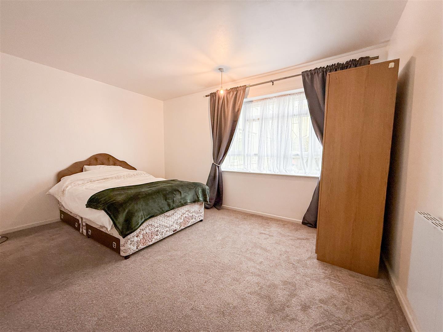 Recently carpeted. Wall mounted electric modern radiator (not tested). Double glazed window to front.