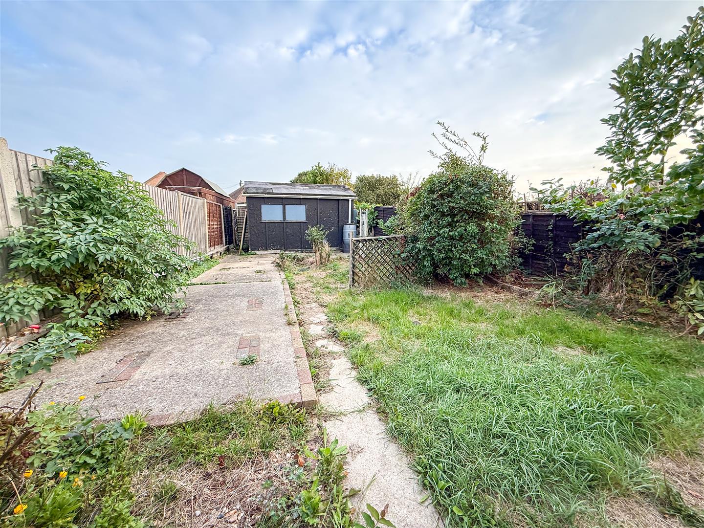 Approx 45' rear garden. Mainly laid to lawn with array of shrub borders. Enclosed by panel fencing. Timber storage shed. Hard standing patio areas.