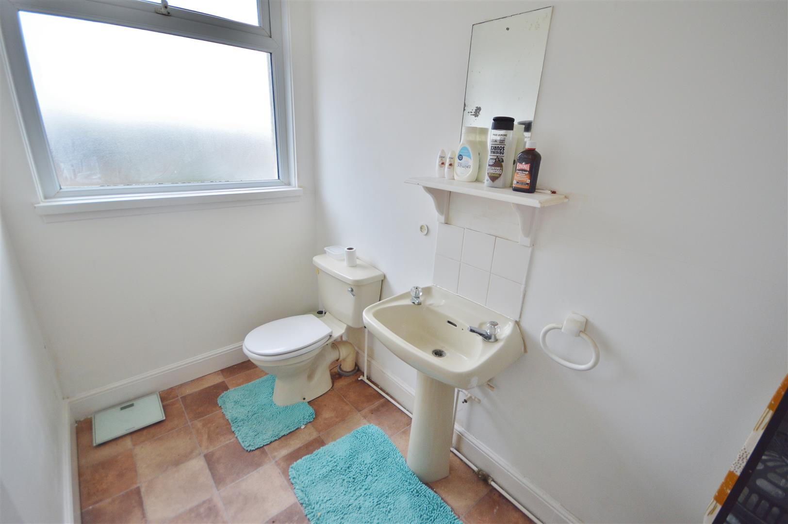 Suite comprising a low level W.C. Pedestal hand wash sink basin. Double glazed window to front.