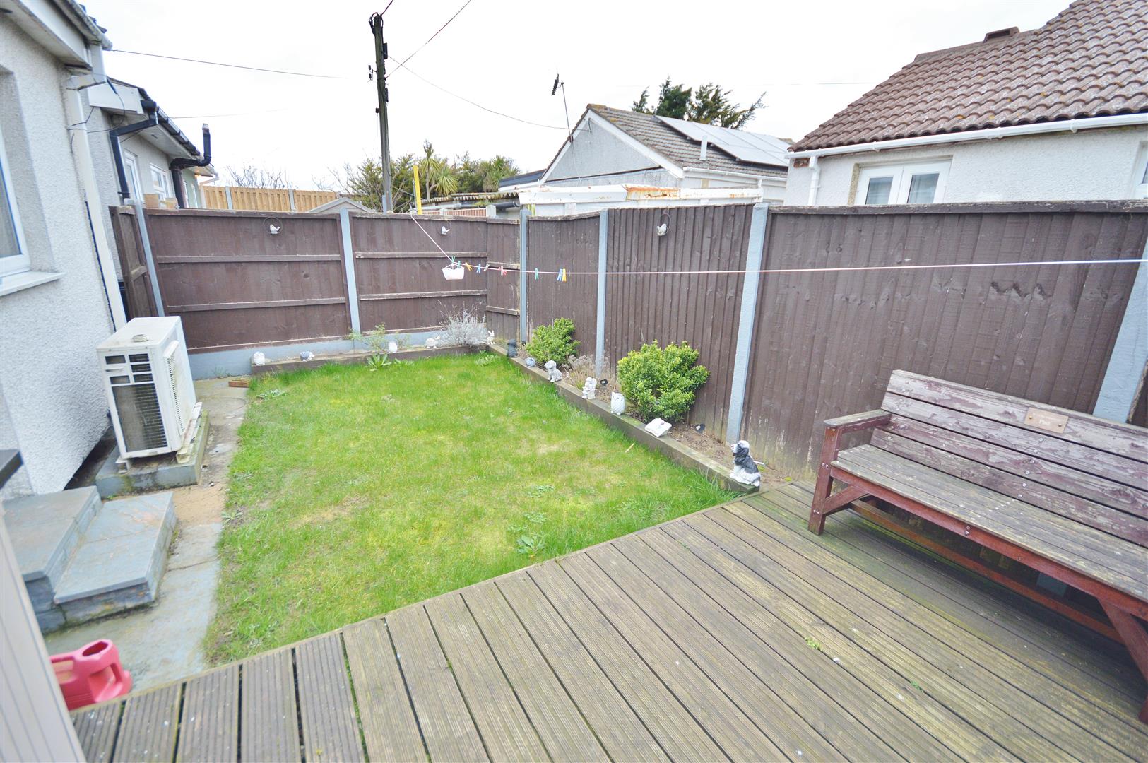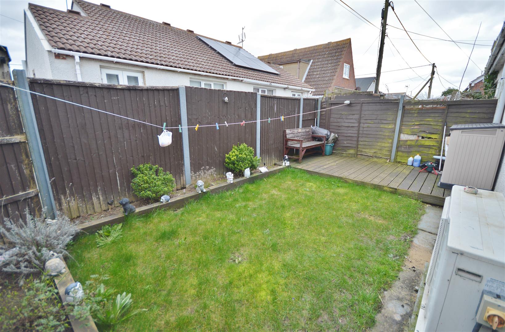 Raised decked area with the remainder being laid to lawn. Enclosed by panelled fencing. Air source heat pumping system (not tested). Side pedestrian access leading to the outside front.
