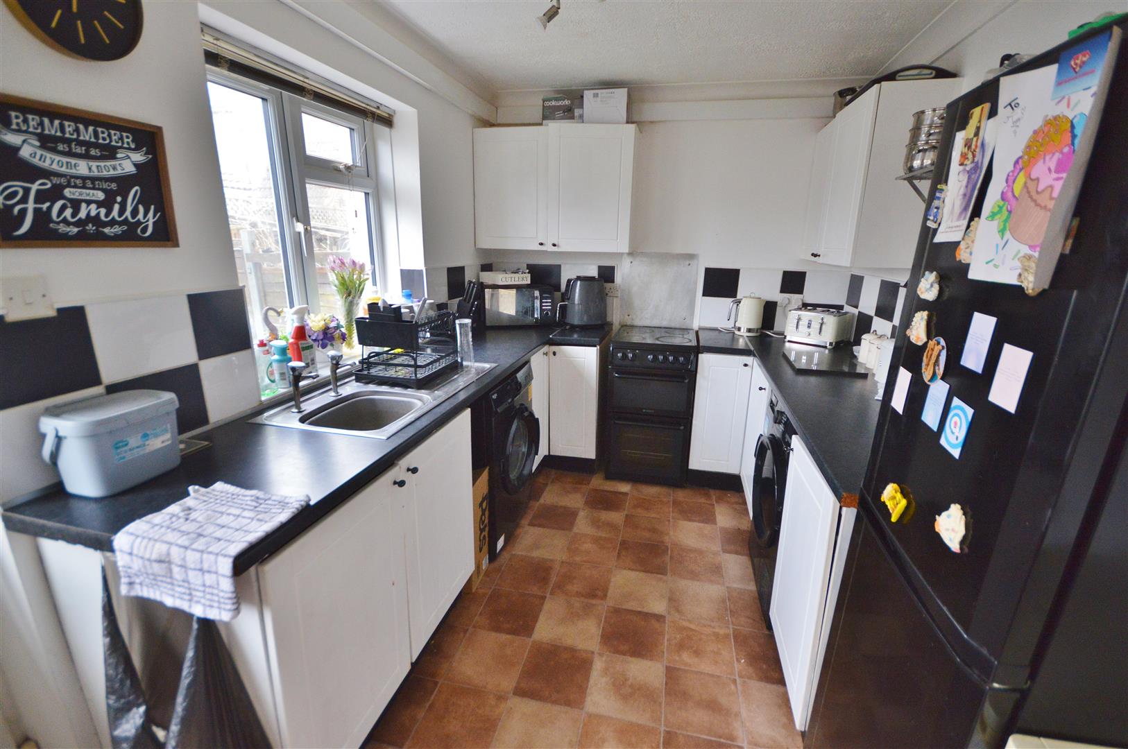 Fitted kitchen suite comprising laminated rolled edge work surfaces with inset single drainer stainless steel sink unit. Space for cooker. Space and plumbing for washing machine. Space and plumbing for dishwasher. Space for fridge freezer. Selection of matching wall units with cupboards and drawers at both eye and floor level. Radiator. Double glazed window to rear. UPVC Double glazed door leading to rear garden.