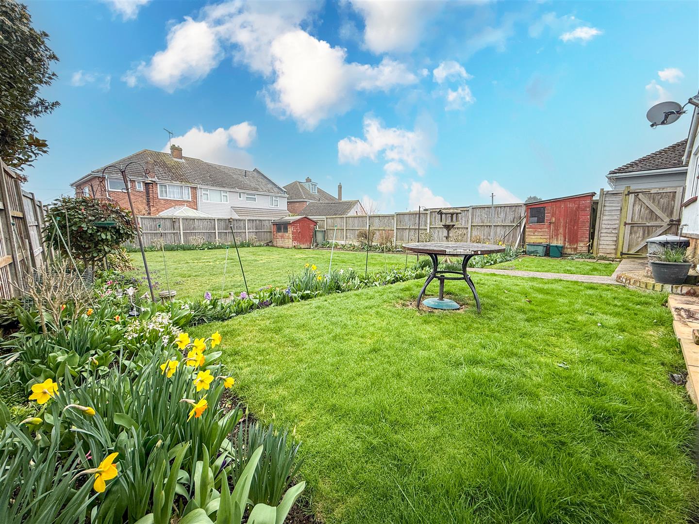 Approx 60' x 40 Rear garden. Mainly laid to lawn with array of well stocked flower and shrub borders. Two timber storage sheds to remain. Enclosed by panel fencing.