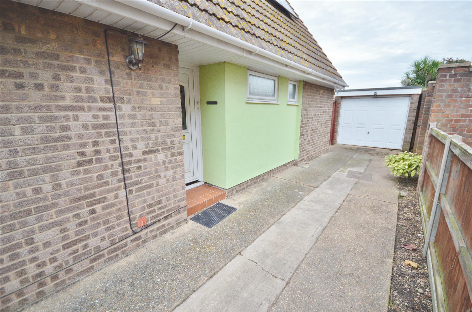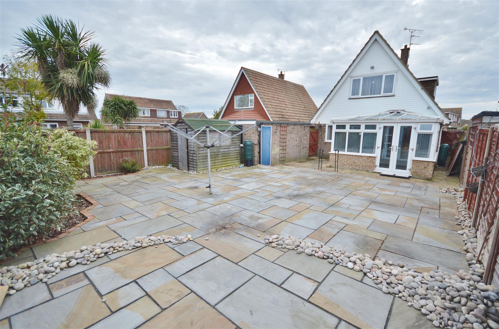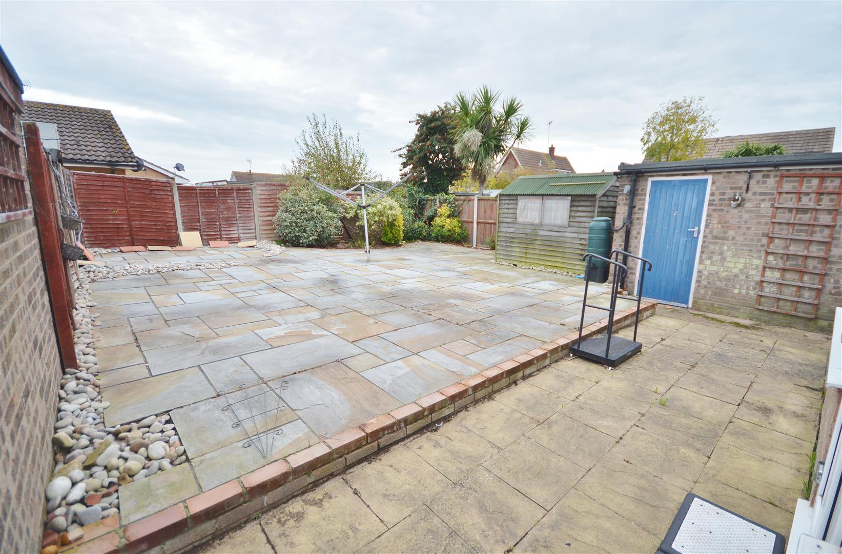 Being completely patio paved. Enclosed by panelled fencing. One wooden storage shed. Door leading into garage. Side pedestrian access leading to outside front.