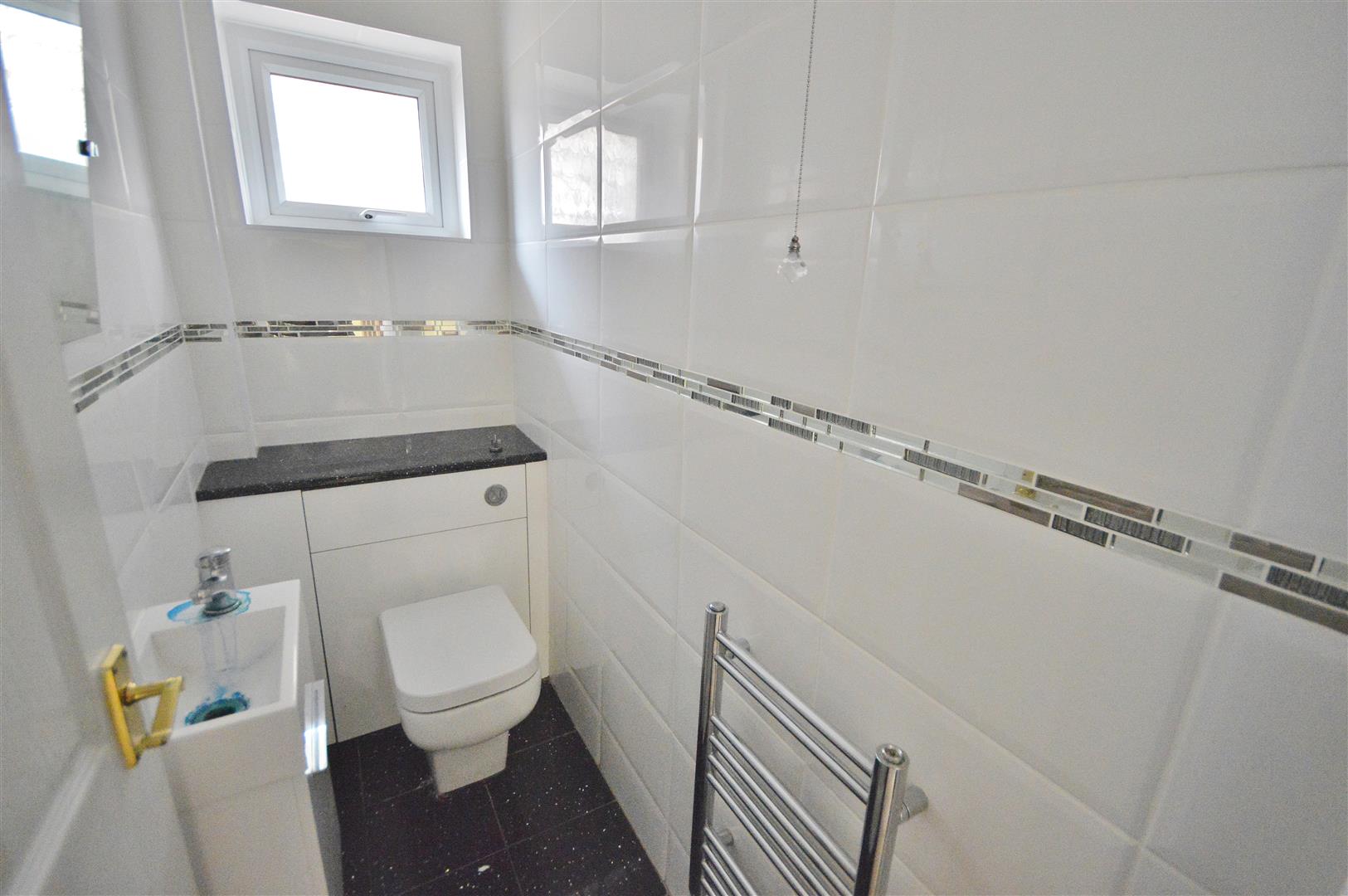 Comprises low level W.C. Vanity hand wash sink basin with a stainless steel mixer tap. Fully tiled. Heated towel rail. Double glazed window to side.