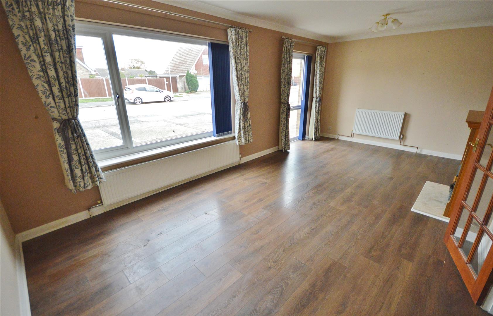 Fitted kitchen suite comprising laminated square edge work surfaces with inset one and a half bowl single drainer sink unit with stainless steel mixer tap. Inset four ring gas hob with extractor hood above (not tested). Inset double oven. Space for fridge freezer. Integrated dishwasher. Space and plumbing for washing machine. Cupboard housing gas combination boiler (not tested). Selection of matching wall units with cupboards and drawers at both eye and floor level. Radiator. Double glazed window to side. UPVC Double glazed French Doors leading to:
