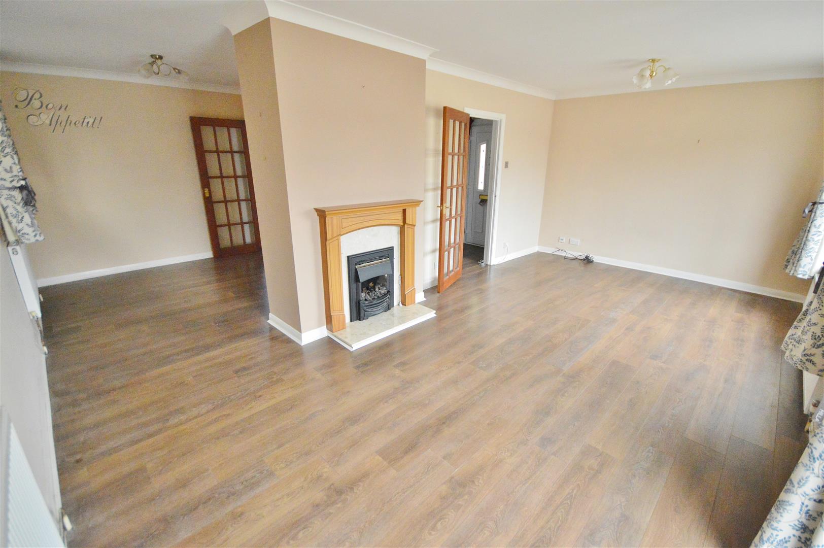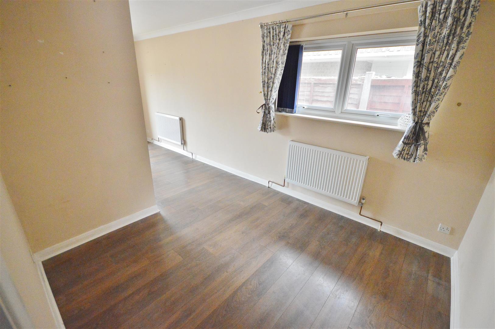 Inset electric feature fireplace (not tested) with a wooden fire surround. Two radiators. Double glazed windows to front. Open access to: