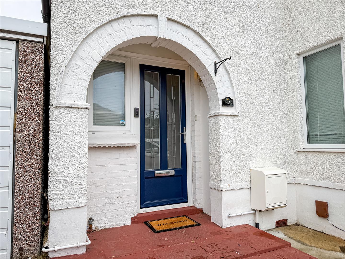Feature arch storm porch leading to double glazed composite entrance door to entrance hallway.