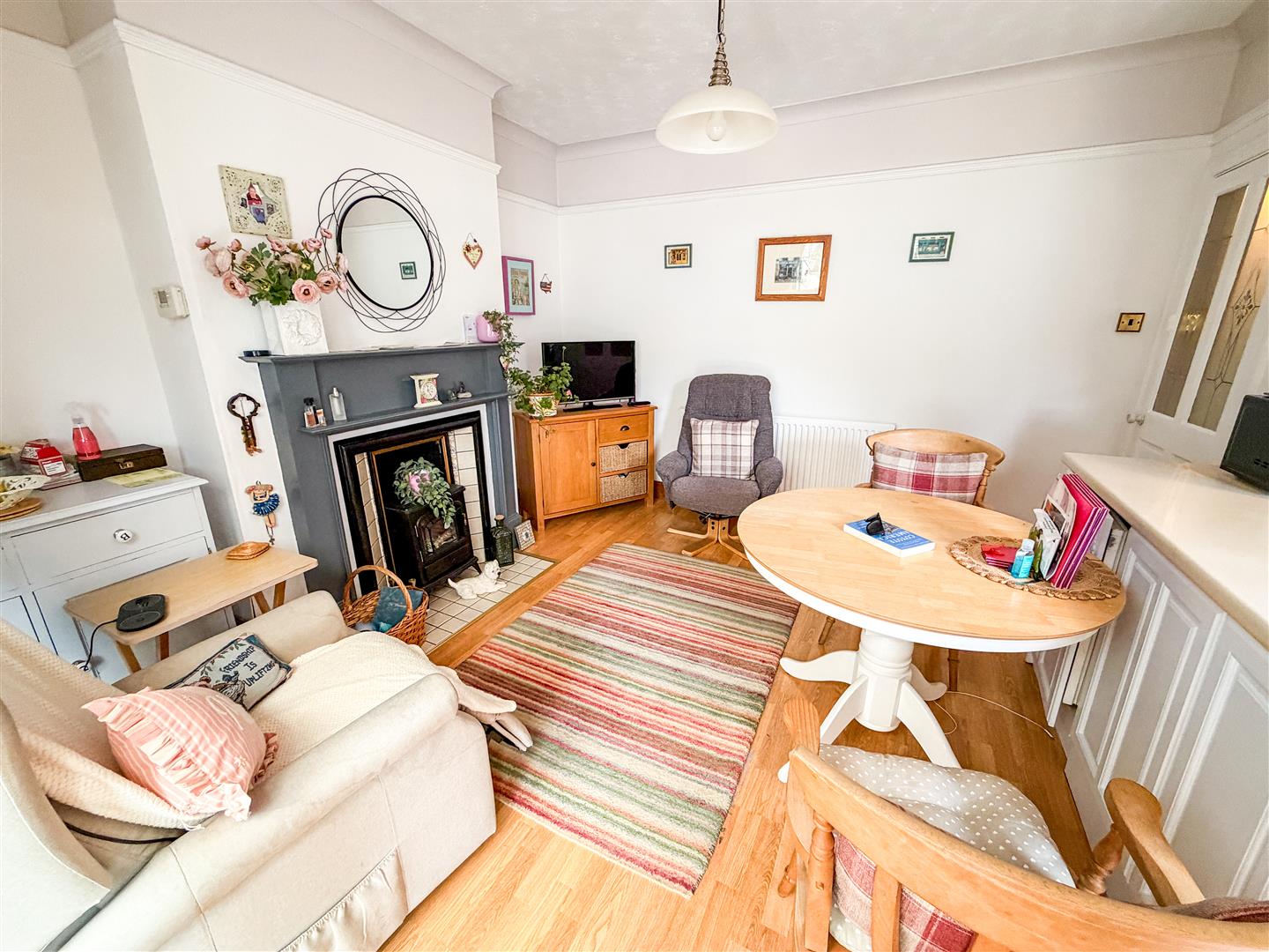 Radiator. Wood effect flooring. Picture rail. Double glazed window to front.