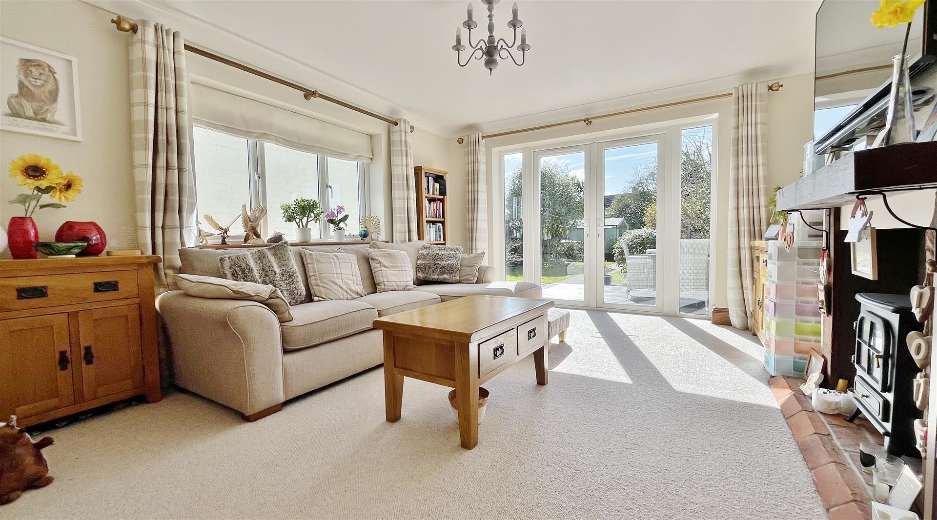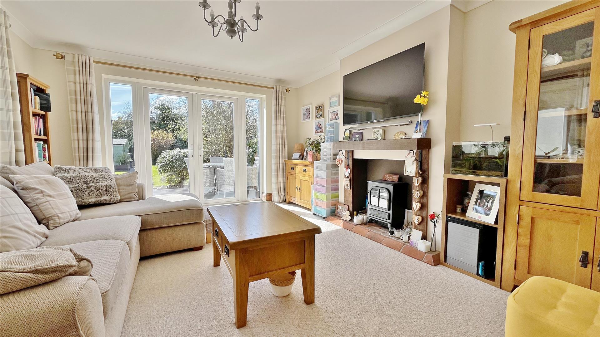 Radiator. Sealed unit double glazed window to side. Sealed unit double glazed patio doors to garden.