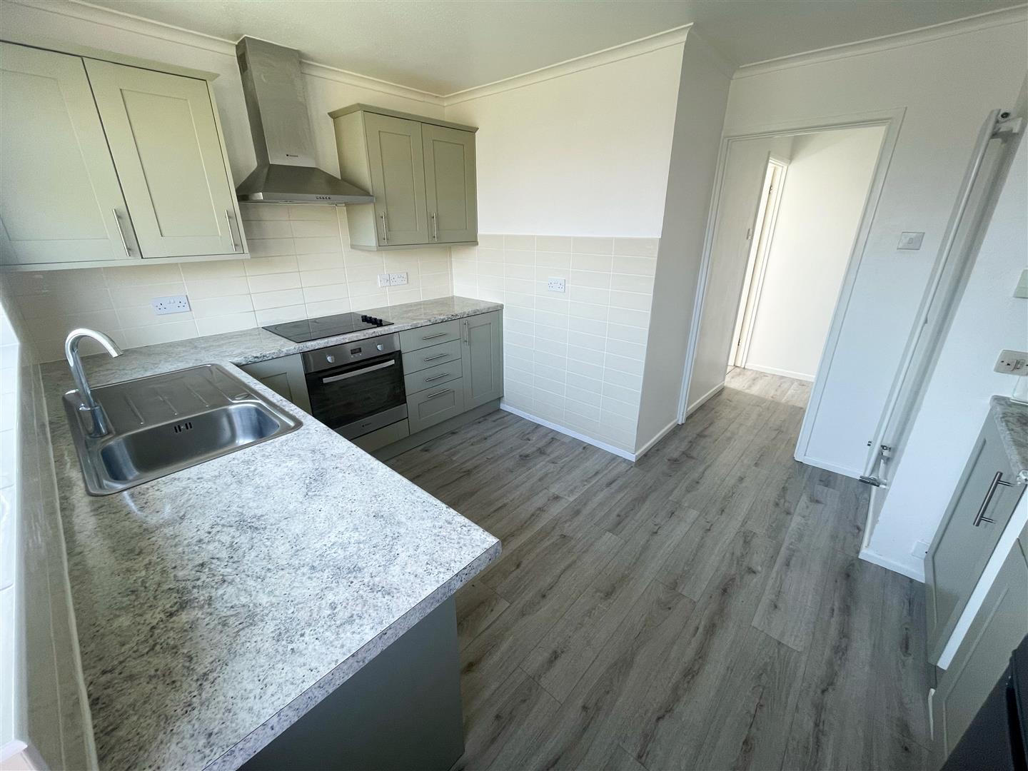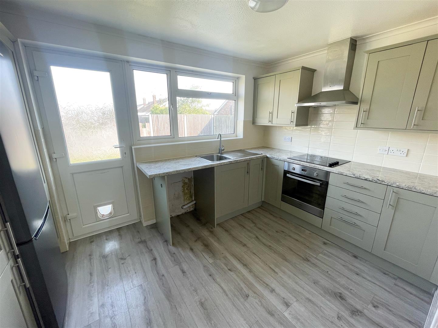 Fitted with a range of matching fronted units. Inset stainless bowl sink and drainer unit. Inset four ring electric hob with electric oven under. Fitted extractor hood. Further selection of matching units at both eye and floor level. Plumbing for washing machine. Space for fridge/freezer. Part tiled walls. Laminate flooring. Featured full length radiator. Sealed unit double glazed window to rear. Obscured sealed unit double glazed door leading to: