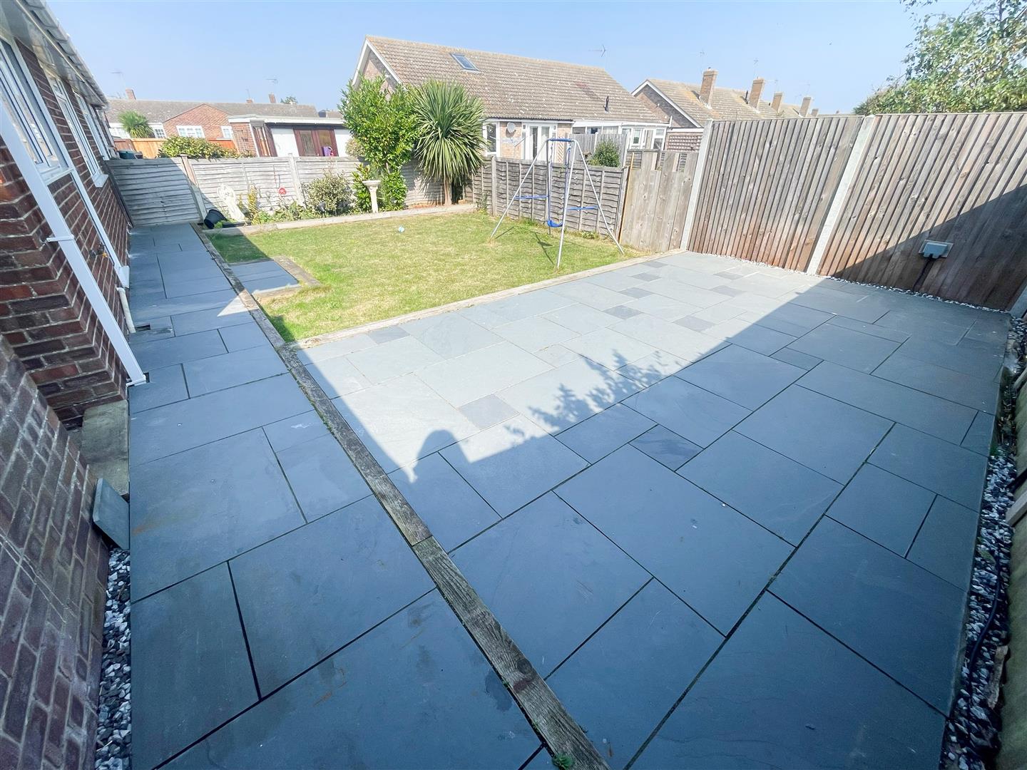 Part paved area. Remainder laid to lawn. Beds stocked with trees. Private access door to garage. Outside tap. Enclosed by panel fencing.