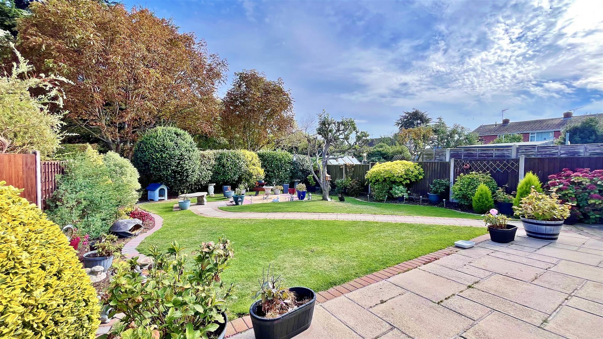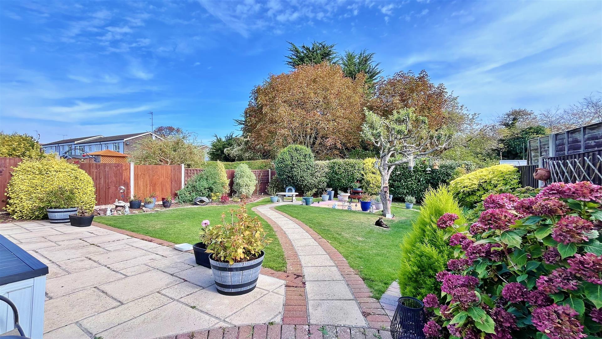 Landscaped with paved patio area. Remainder laid to lawn. Beds stocked with flowers and shrubs. Access to front via side gate. Courtesy door to garage housing wall mounted combination boiler providing heat and hot water throughout. Power and light connected. Enclosed by panelled fencing.