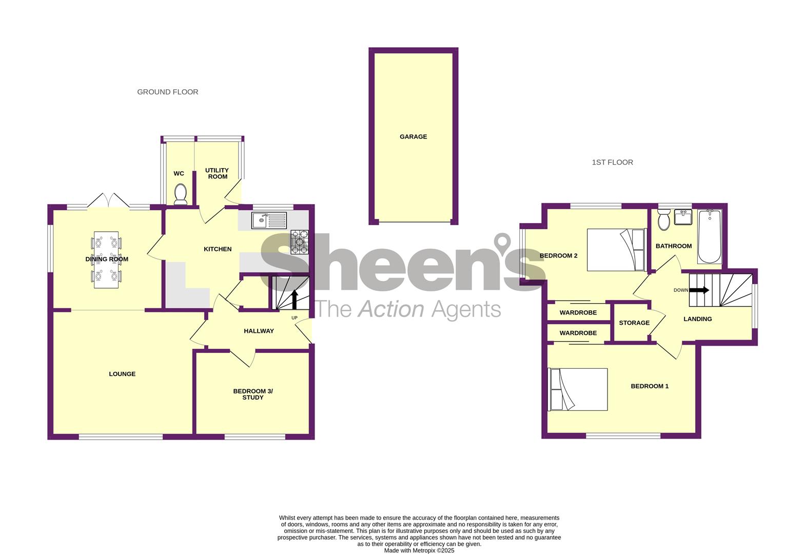 The accommodation comprises approximate room sizes: