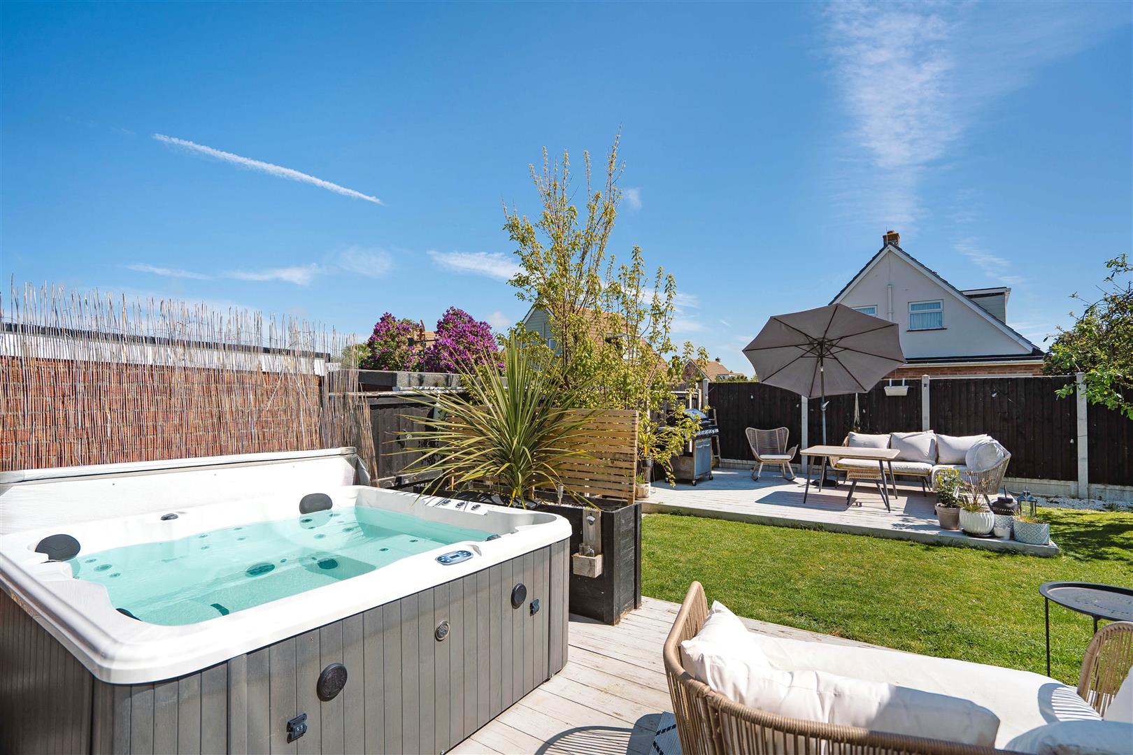 Approx 33' deep x 46' wide landscaped rear garden. Mainly laid to lawn with array of trees. Wooden decked patio areas with space for Hot Tub (Possibly available under separate negotiations). Enclosed by panel fencing.