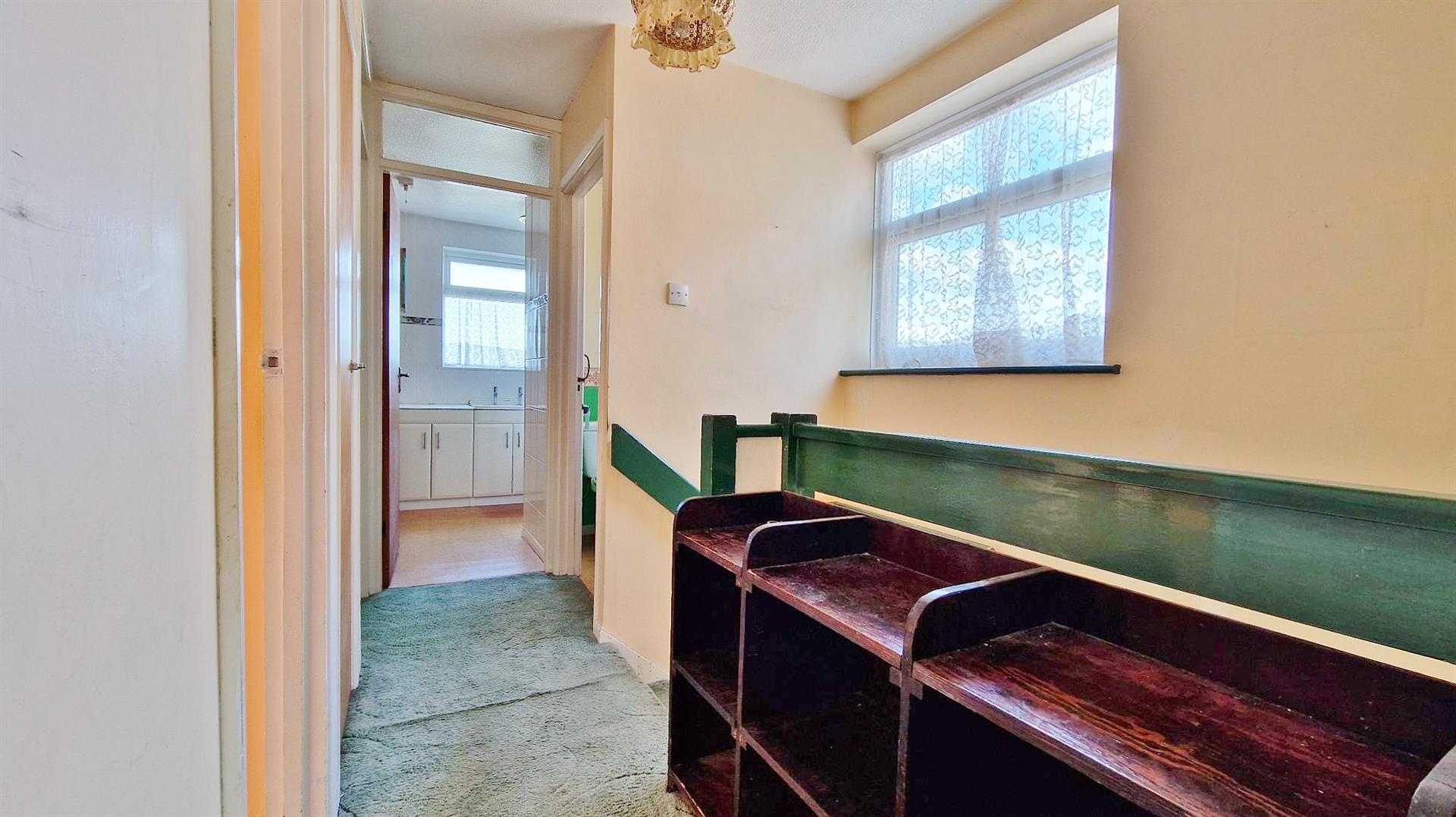 Loft access. Built in airing cupboard. Sealed unit double glazed window to side. Doors to:-