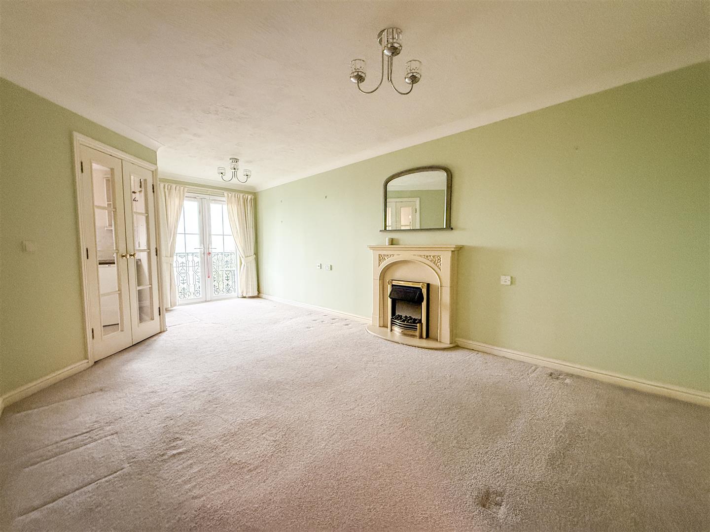 Electric storage heaters (not tested). Feature stone fireplace with inset electric fire (not tested). Internal part glazed double doors to Kitchen. Double glazed double doors to Balcony.