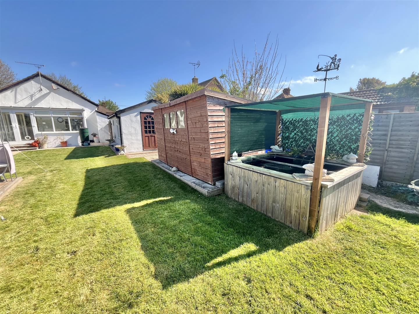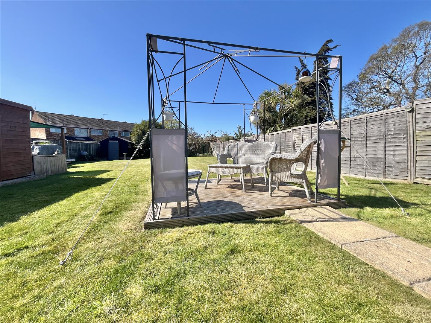 Paved patio area leading to decking area. Remainder being laid to lawn. Two wooden storage sheds. Enclosed by panelled fencing. Side access leading to the outside front.