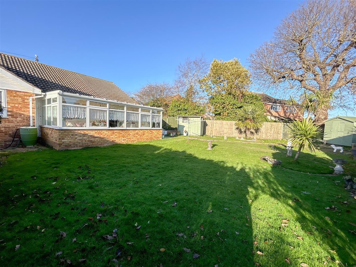 Patio paved area with the remainder being laid to lawn. Enclosed by panelled fencing. Two wooden storage sheds. Side pedestrian access to the front.