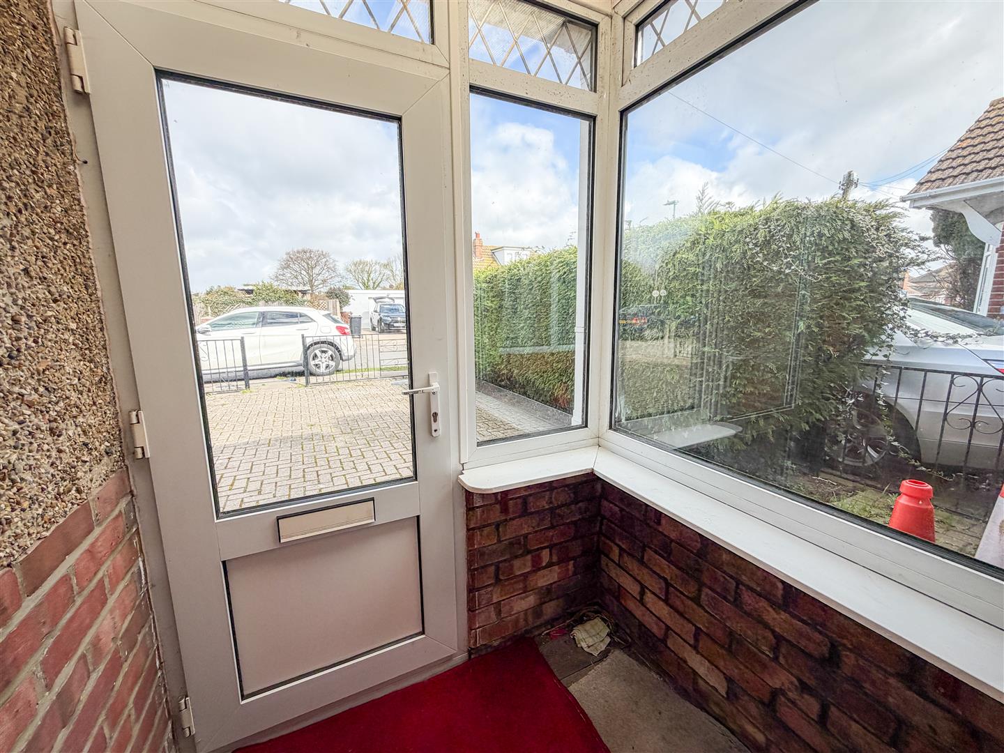 Part brick built with poly carbonate roof. Part leaded light effect double glazed windows to front and side. Further multi panelled glazed wooden entrance door to: