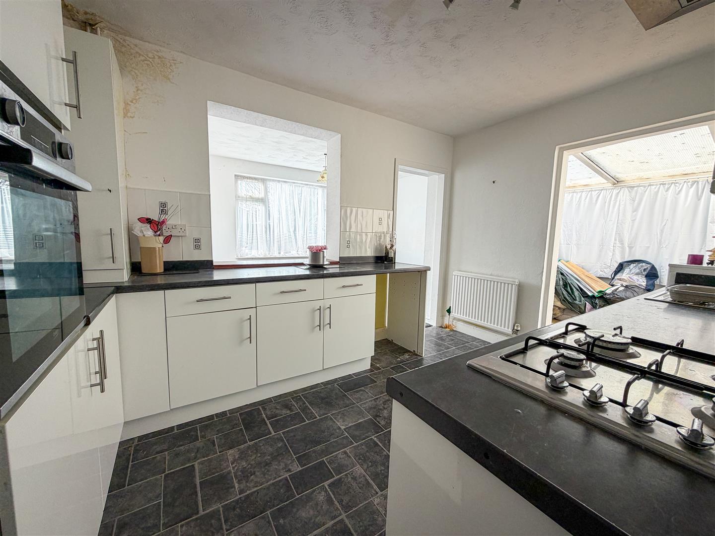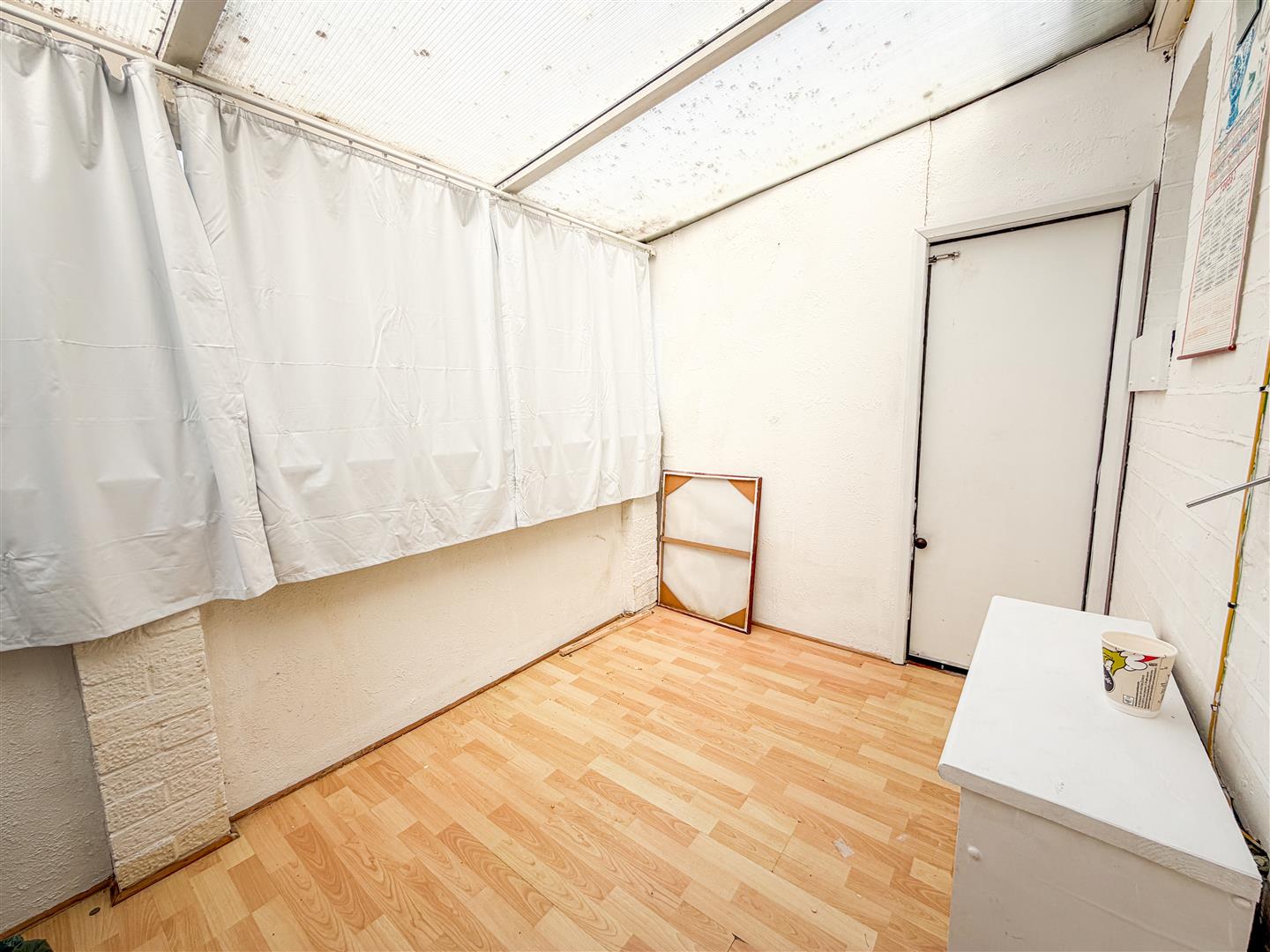 Wood effect flooring. Space and plumbing for washing machine and tumble dryer. Poly carbonate roof. Double glazed windows to side and rear. Personal internal door to garage.