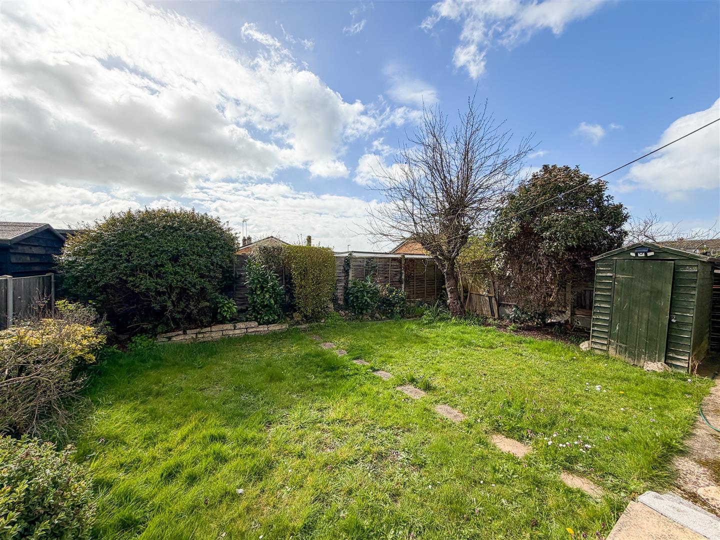 Approx 36' South facing rear garden which comprises a block paved patio area. Remainder being laid to lawn with mature shrubs. Wooden storage shed to remain. Enclosed by panelled fencing.