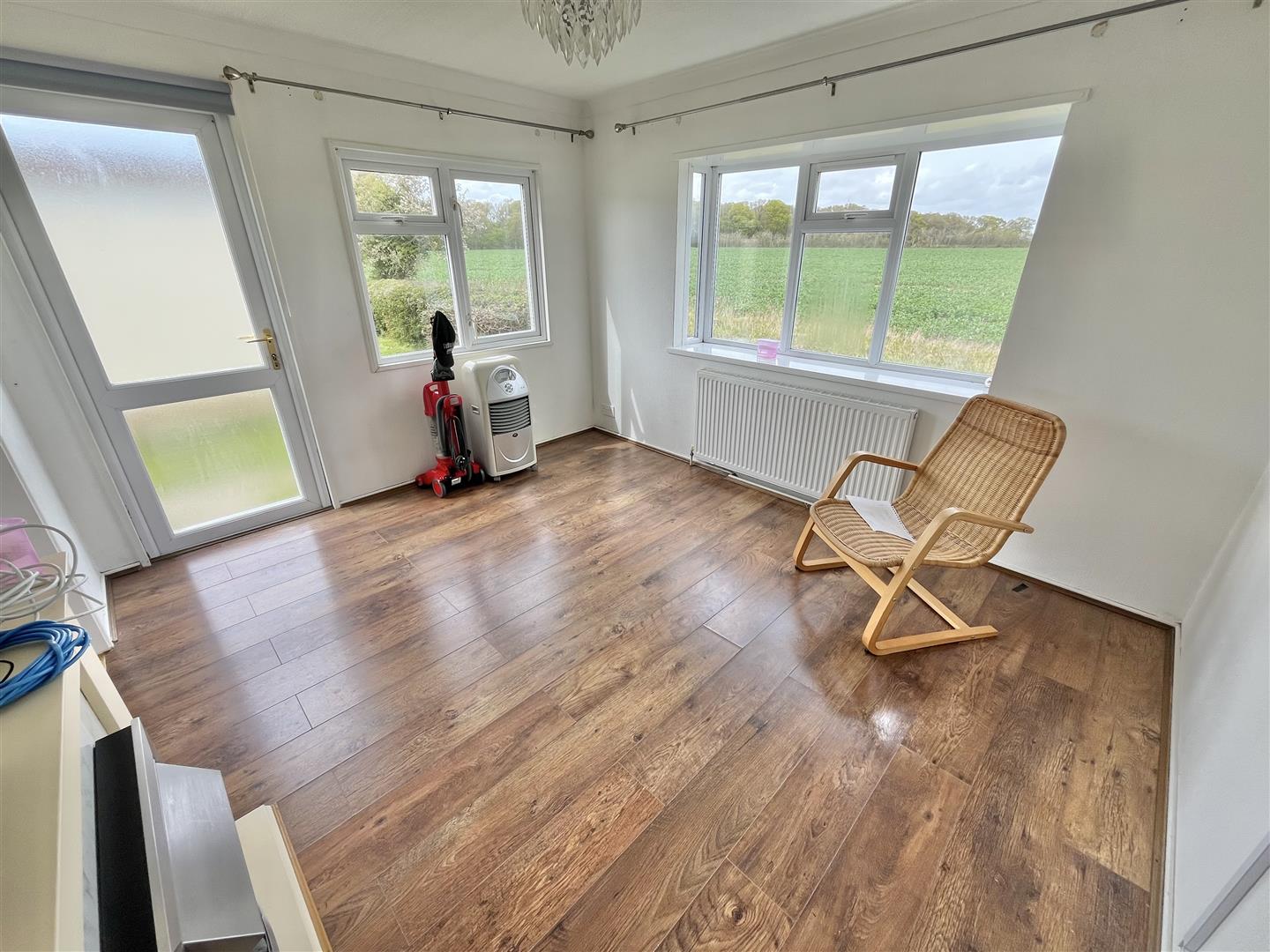 Decorative fireplace. Radiator. Double glazed door to outside. Double glazed window to side and rear. Opening to: