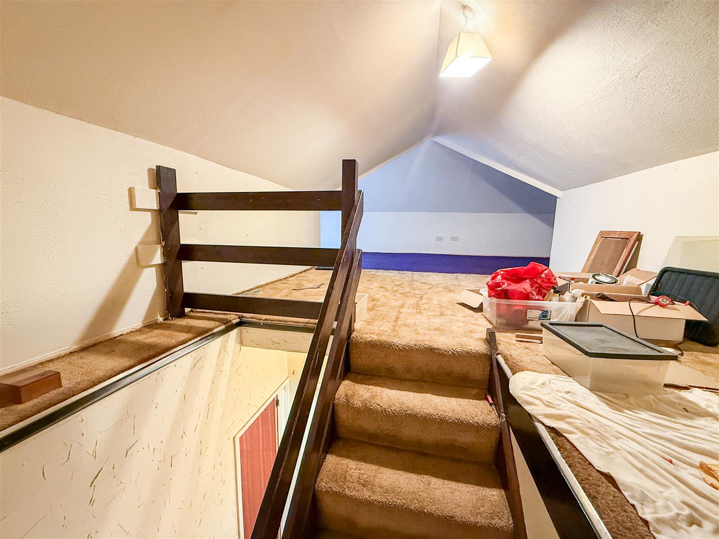 Returning stair flight to attic room. Door to Bedroom Three.