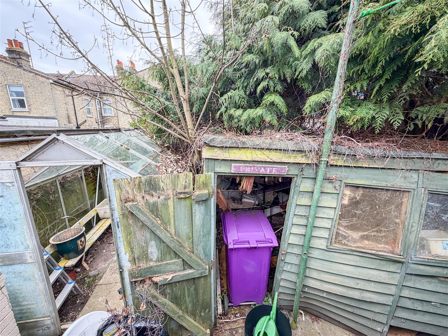 For ease of maintence, the garden was sectioned off to leave an additional piece of garden to the rear which contains a greenhouse and a dilapidated shed.