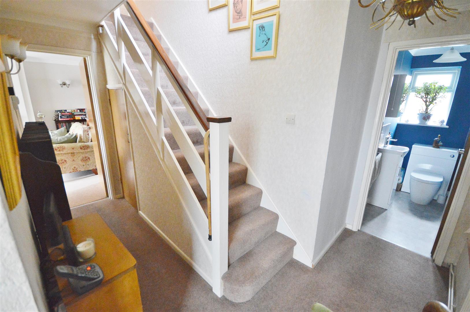 Stair flight to first floor landing. Under stairs storage cupboard. Radiator. Doors to: