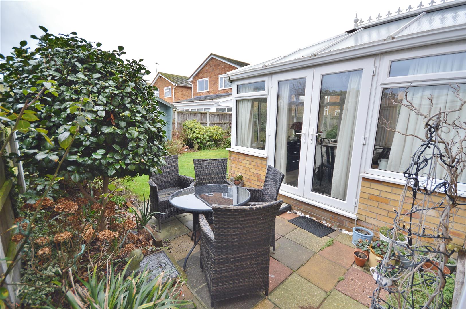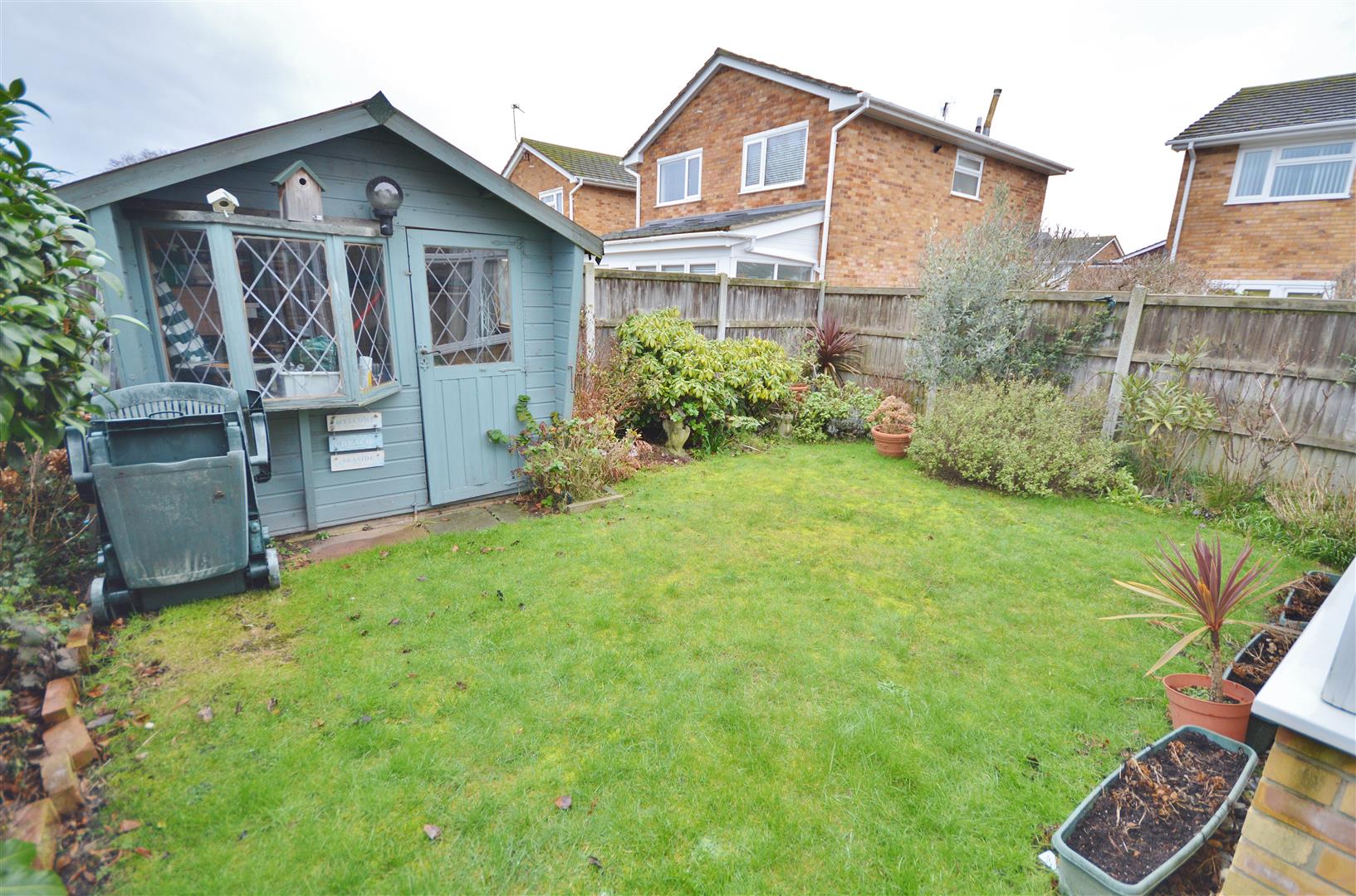Patio paved area with the remainder being laid to lawn. Enclosed by panelled fencing. One wooden storage shed. Side pedestrian access leading to the outside front.
