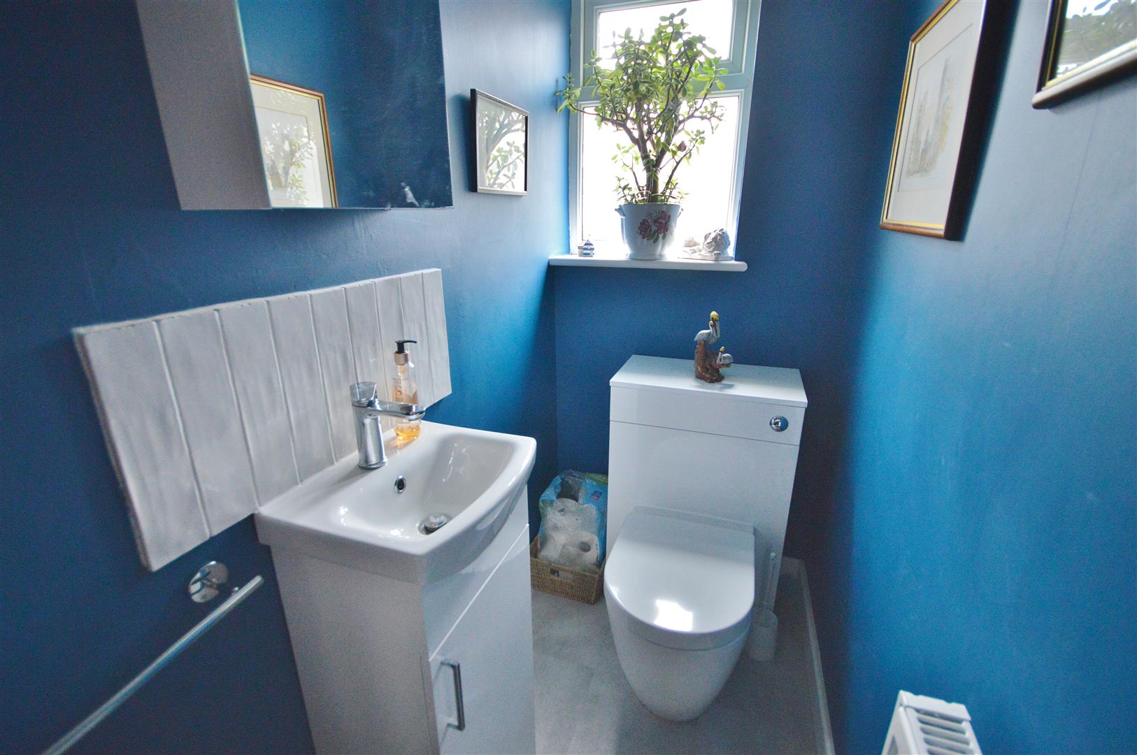 Two piece suite comprising low level W.C. Vanity hand wash sink basin with a stainless steel mixer tap. Radiator. Double glazed window to rear.
