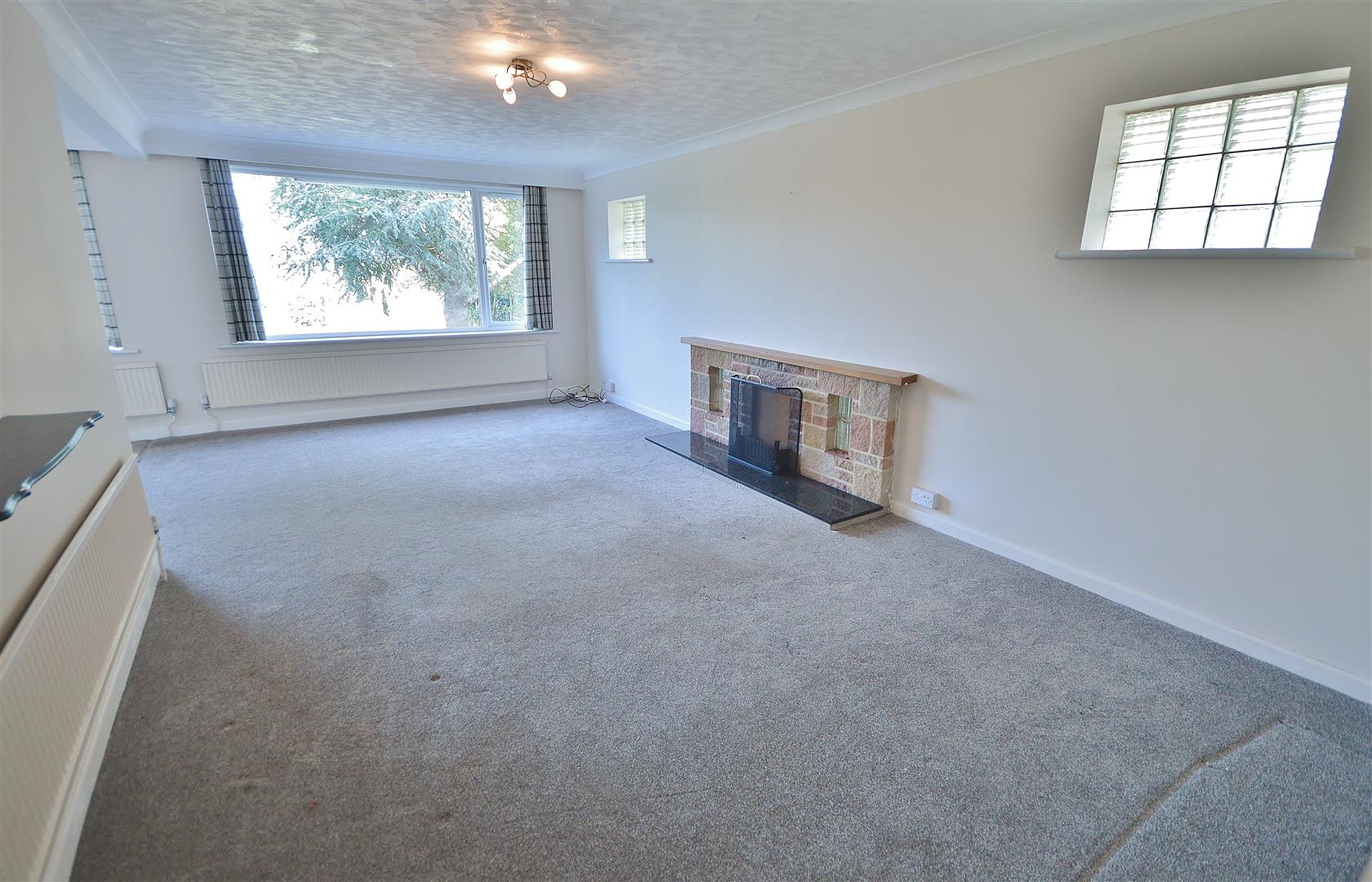 L shaped. Three radiators. Two double glazed windows to rear. Two glass block windows to side. Fireplace. Double glazed sliding doors to study.