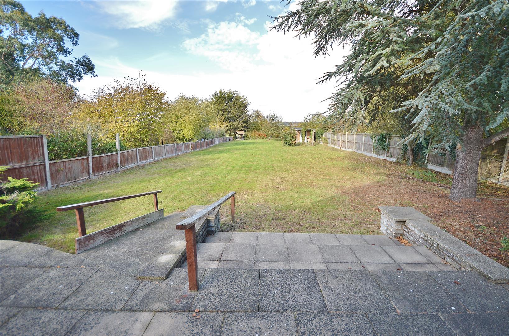 Measuring Approximately 190' rear garden commencing with a paved patio area. Steps and ramp leading to lawn area. Workshop with power and light connected. Enclosed by panelled fencing. Selection of mature trees and shrubs. Field views to rear. Side pedestrian access via double gates to one side and one single gate to the other.