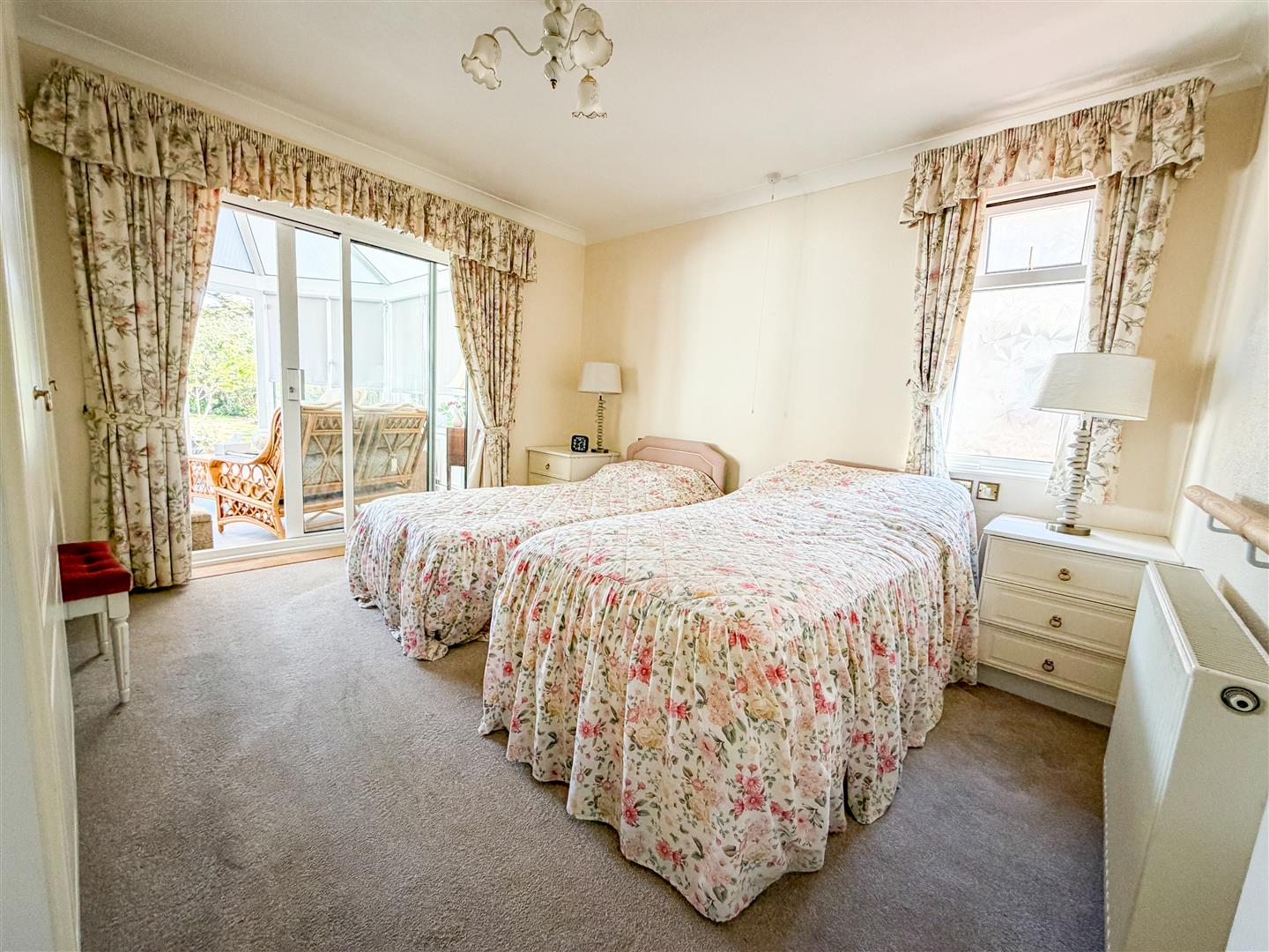 Fitted wardrobes. Radiator. Double glazed window to side. Double glazed sliding patio doors to conservatory.