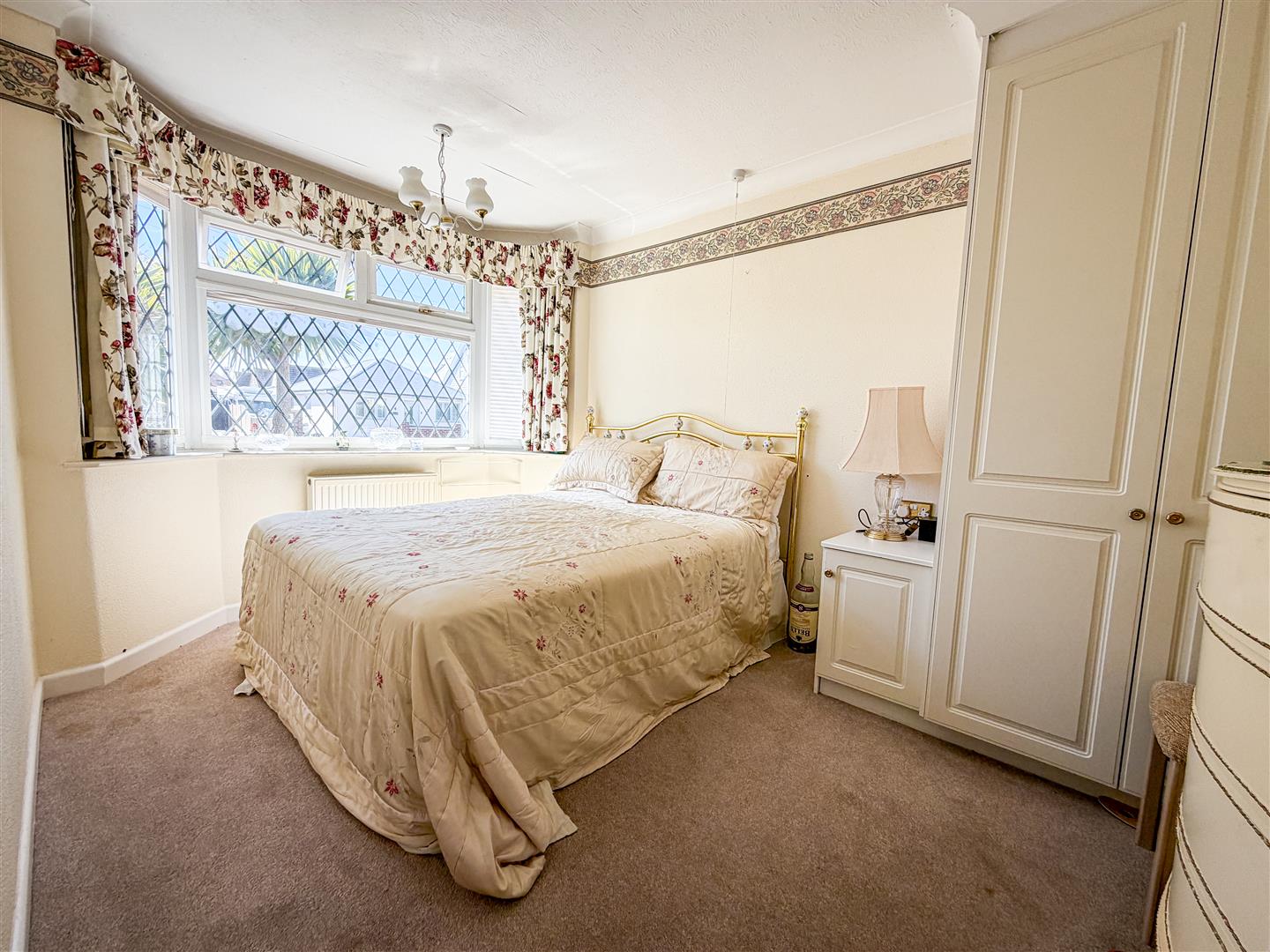 Fitted wardrobes. Radiator. Double glazed leaded light effect bay window to front with distant partial sea views across road.