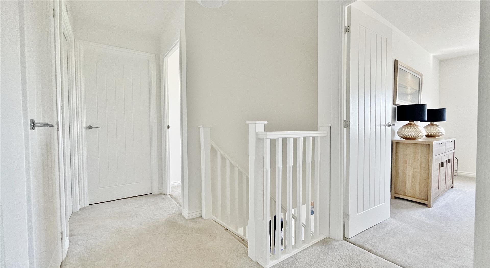 Radiator. Built in airing cupboard. Loft access via hatch with pull down ladder. Doors to:-