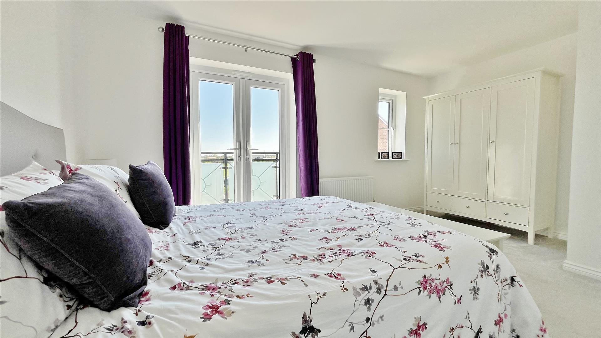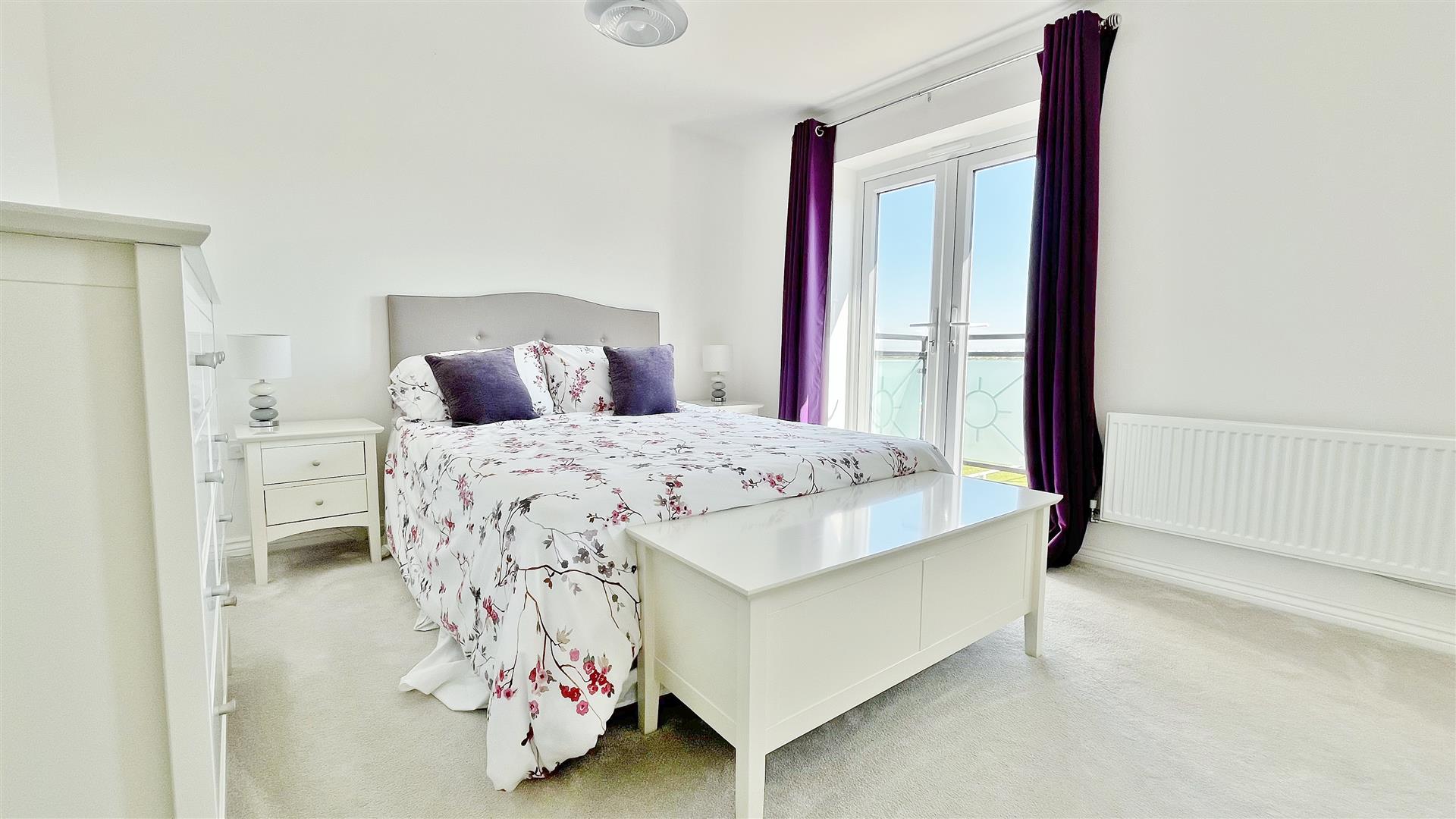 Radiator. Sealed unit double glazed window to front. Sealed unit double glazed French doors to balcony offering stunning backwater views. Door to:-