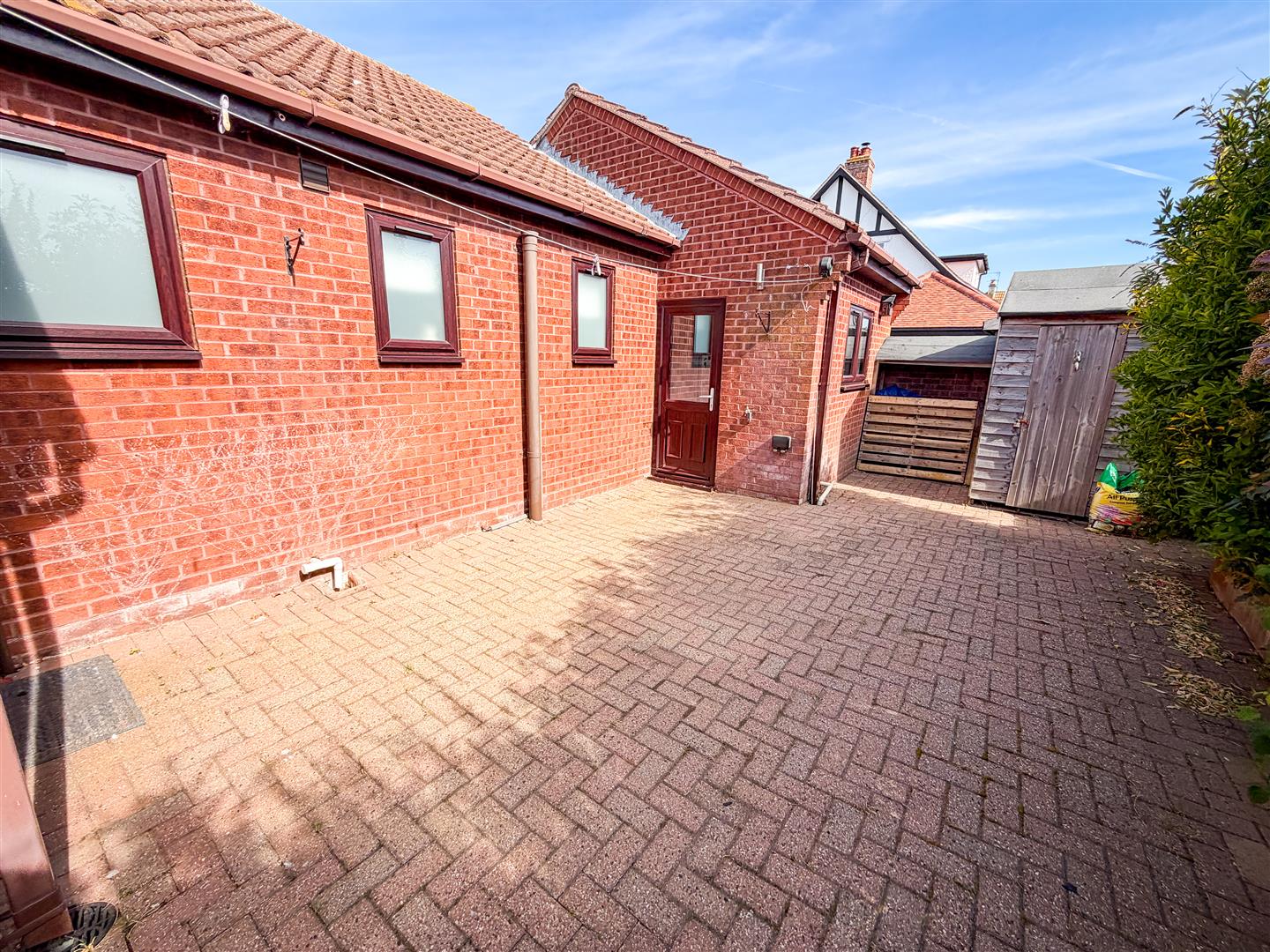 Approx 16' max Depth x 56' max width garden The property benefits from a low maintenance south easterly facing courtyard style rear garden. Laid to block paving with raised borders with array of shrubs. Timber storage shed.