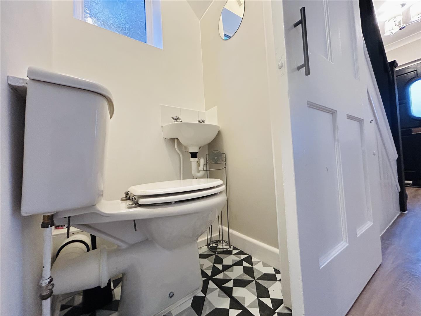 Doors to kitchen, living room and dining room. Door to under stairs W.C.