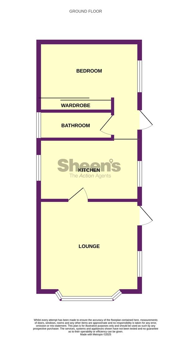 The accommodation comprises approximate room sizes: