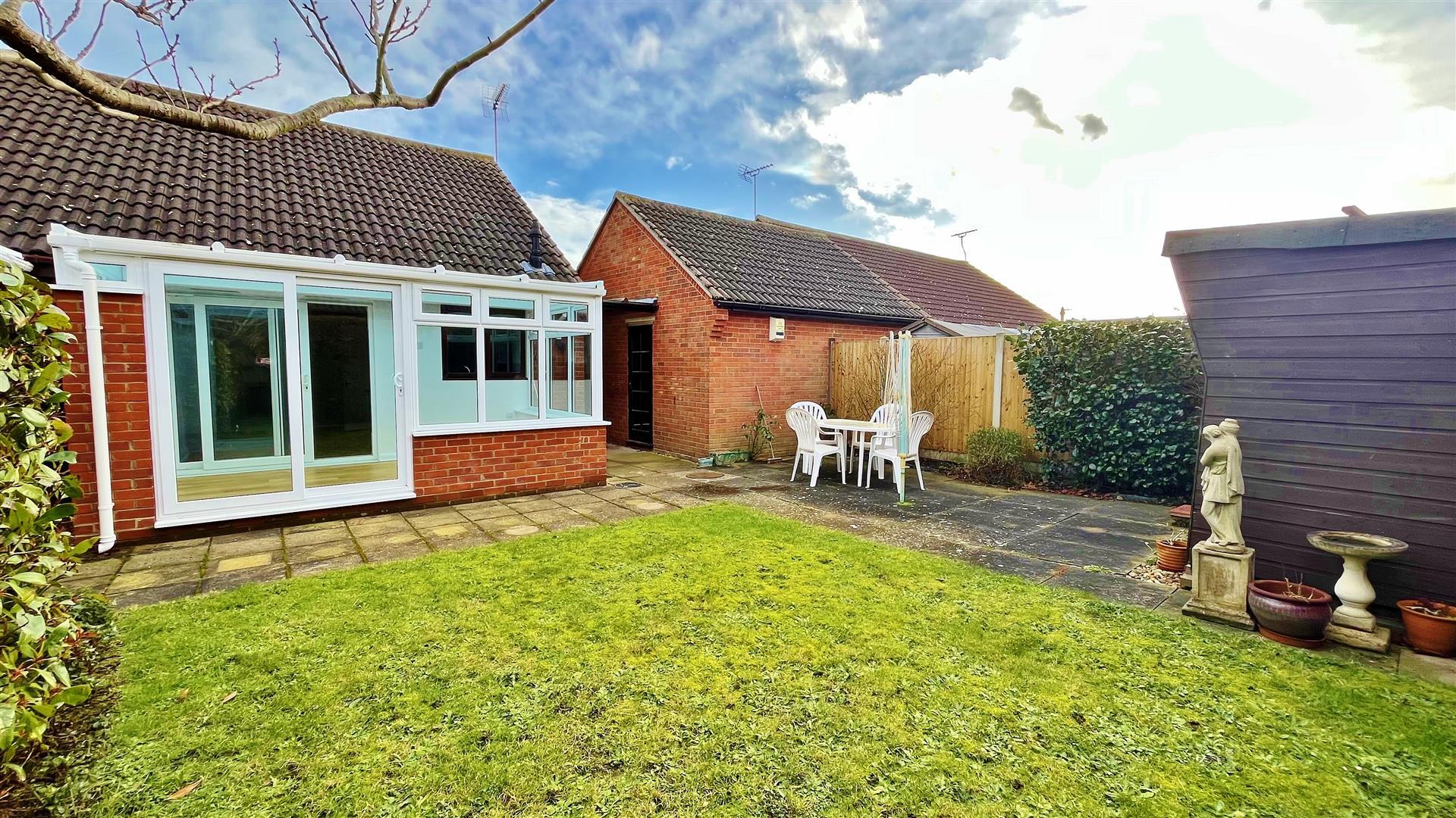 West facing. Patio part area. Majority laid to lawn. Wooden storage shed to remain. Borders well stocked with an array of flowers, shrubs and bushes. Enclosed by panel fencing. Private access door to garage. Wooden gate giving access to front.