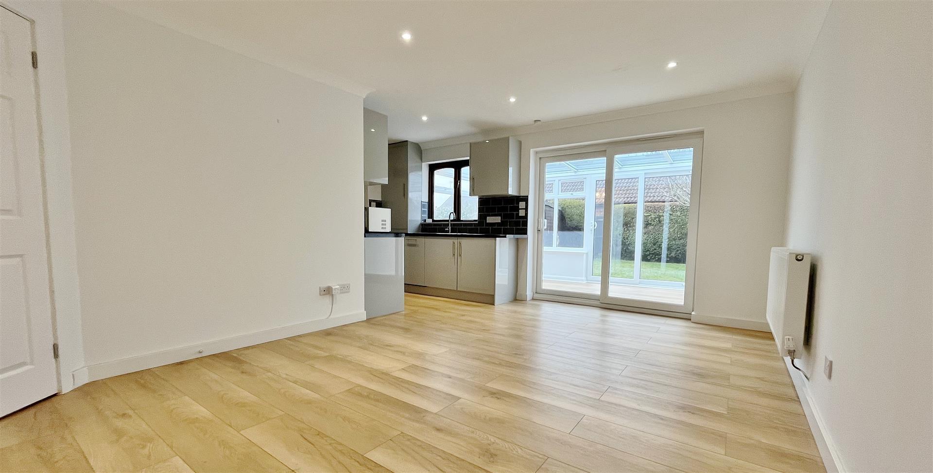 Wood laminate flooring. Radiator. Sealed unit double glazed patio doors leading to conservatory. Open plan to: