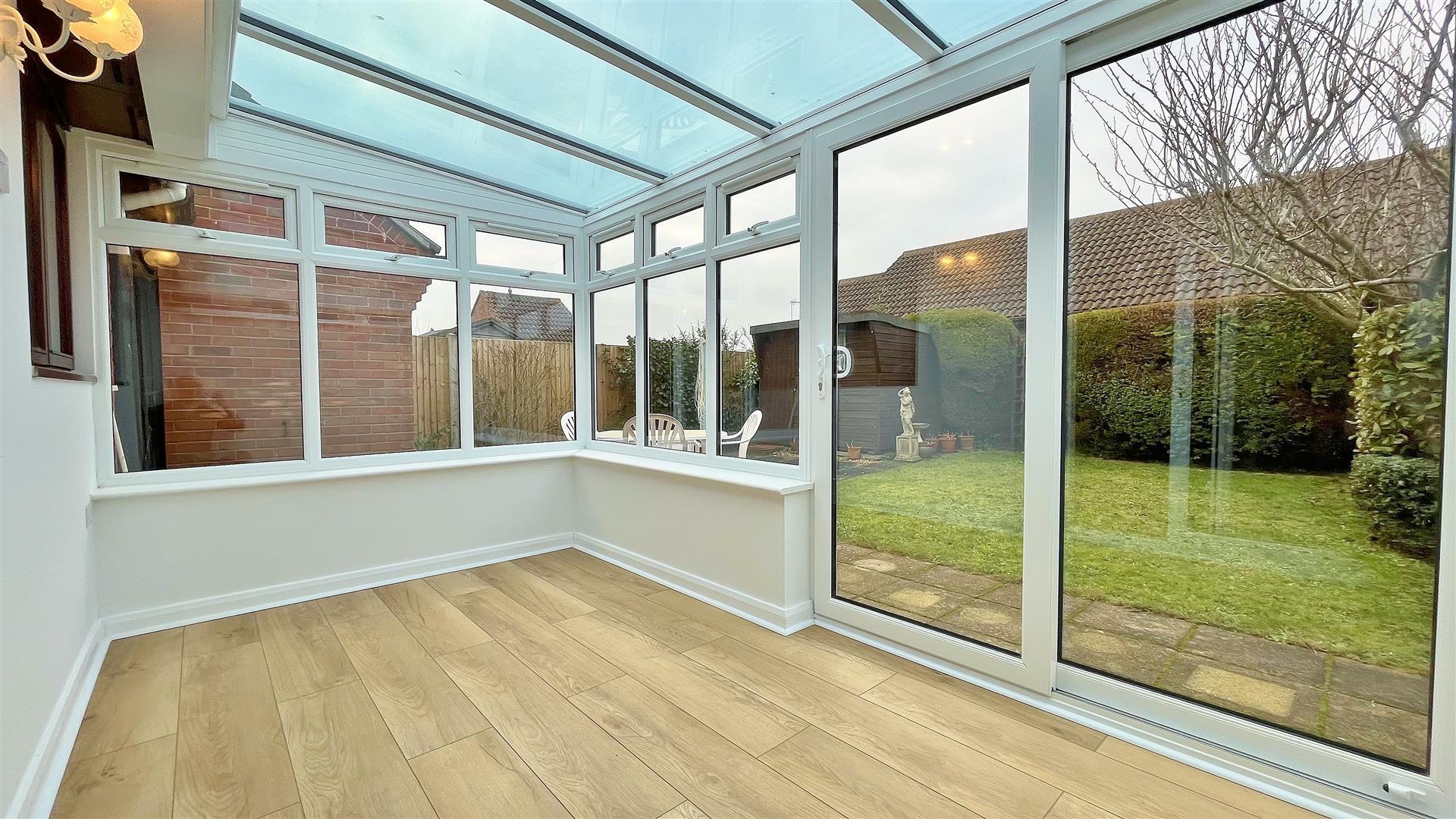 Part brick base. Glass roof. Wood laminate flooring. Sealed unit double glazed windows to side and rear aspect. Sealed unit double glazed patio doors giving access to rear.