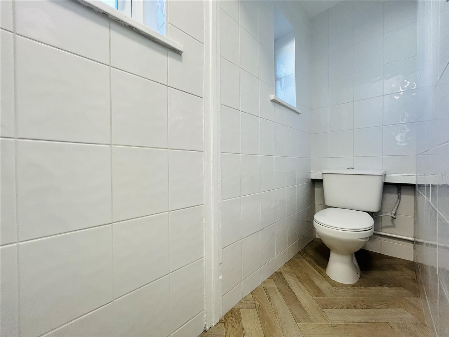 Cupboards at both eye and floor level, integrated oven and hob, extractor hood above. Space & plumbing facilities for washing machine, part tiled walls. Radiator. Double glazed window to rear. Double glazed UPVC door to rear.