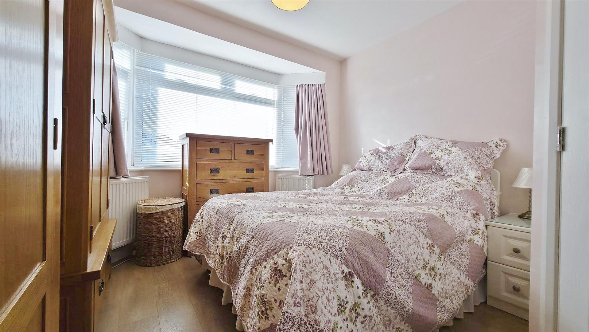 Wood laminate flooring. Two radiators. Sealed unit double glazed bay window to front. Door to: