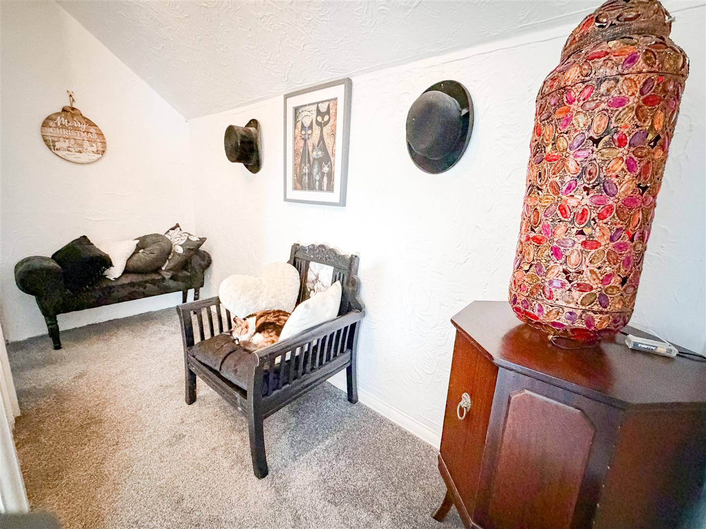 Double glazed window to side offering field views. Part sloping ceiling. Radiator. Eaves storage cupboard. Further eaves storage cupboard housing gas boiler (not tested).
