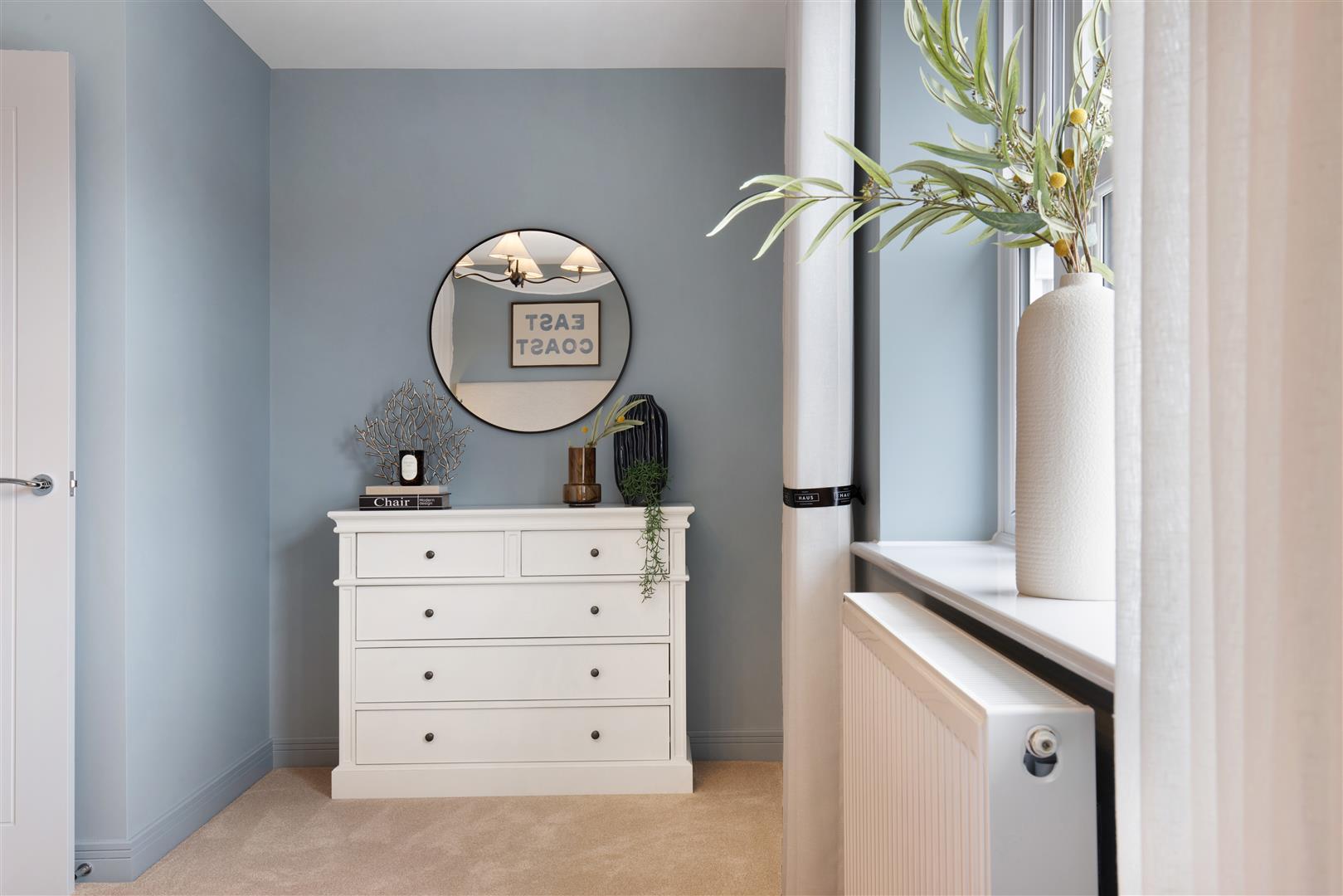 - Wardrobe to principal bedroom with shelf, hanging rail and LED lighting. Mirrored doors where sliding doors provided