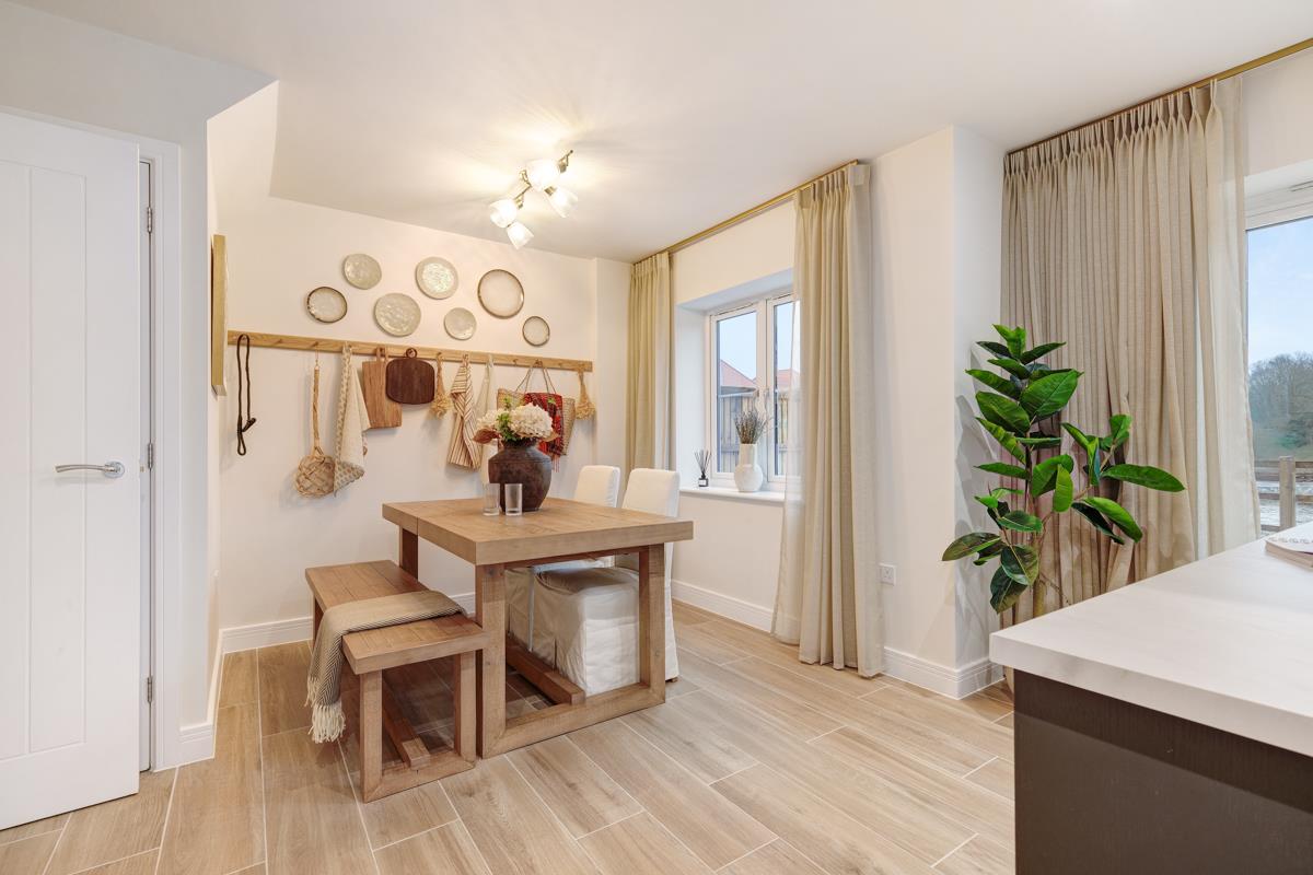 - Stylish fitted kitchen with integrated appliances and laminate worktops* matching upstands, selected from an extensive range of finishes and styles**