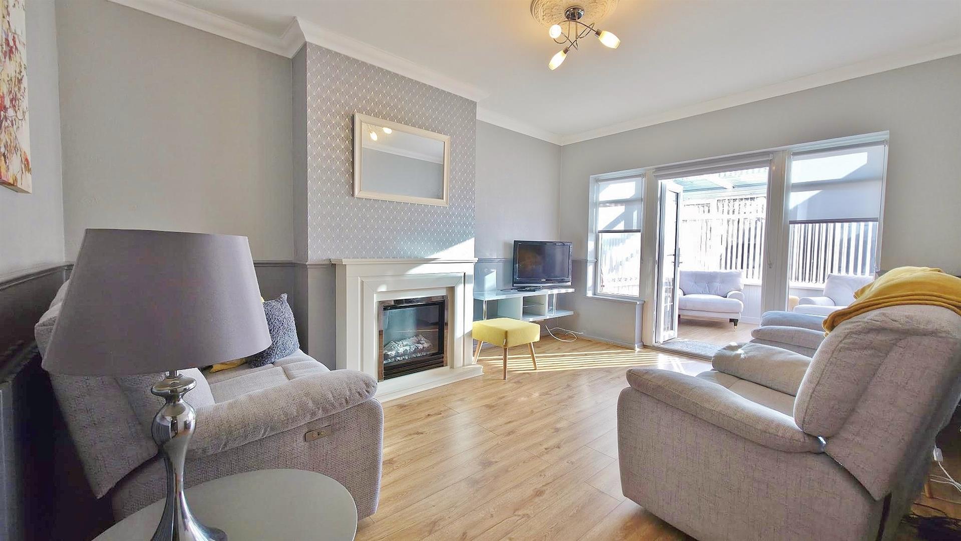 Fireplace with electric fire under. Wood effect laminate flooring. Two panel radiators. Two windows to conservatory. Sealed unit double glazed French style doors to:-