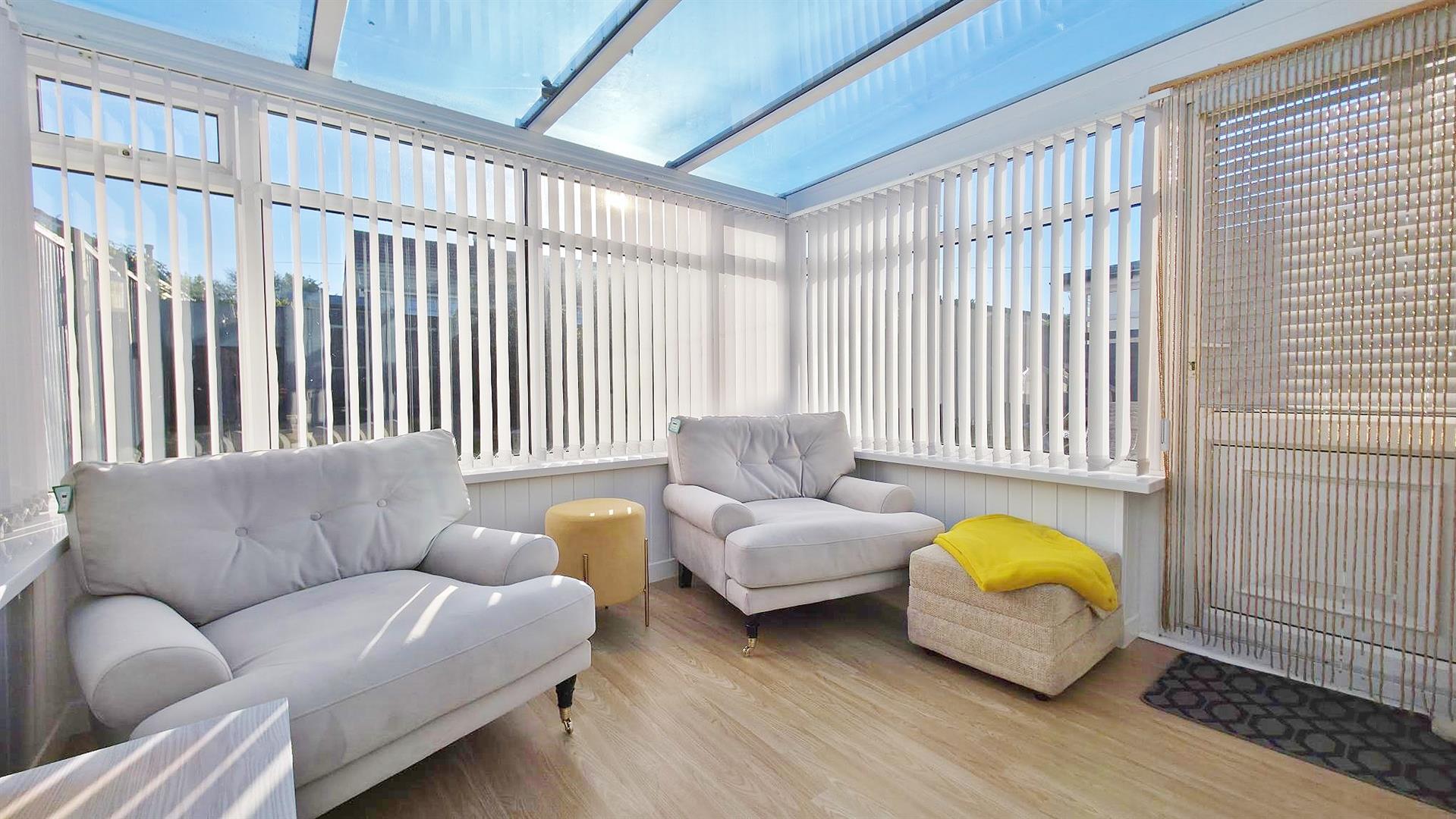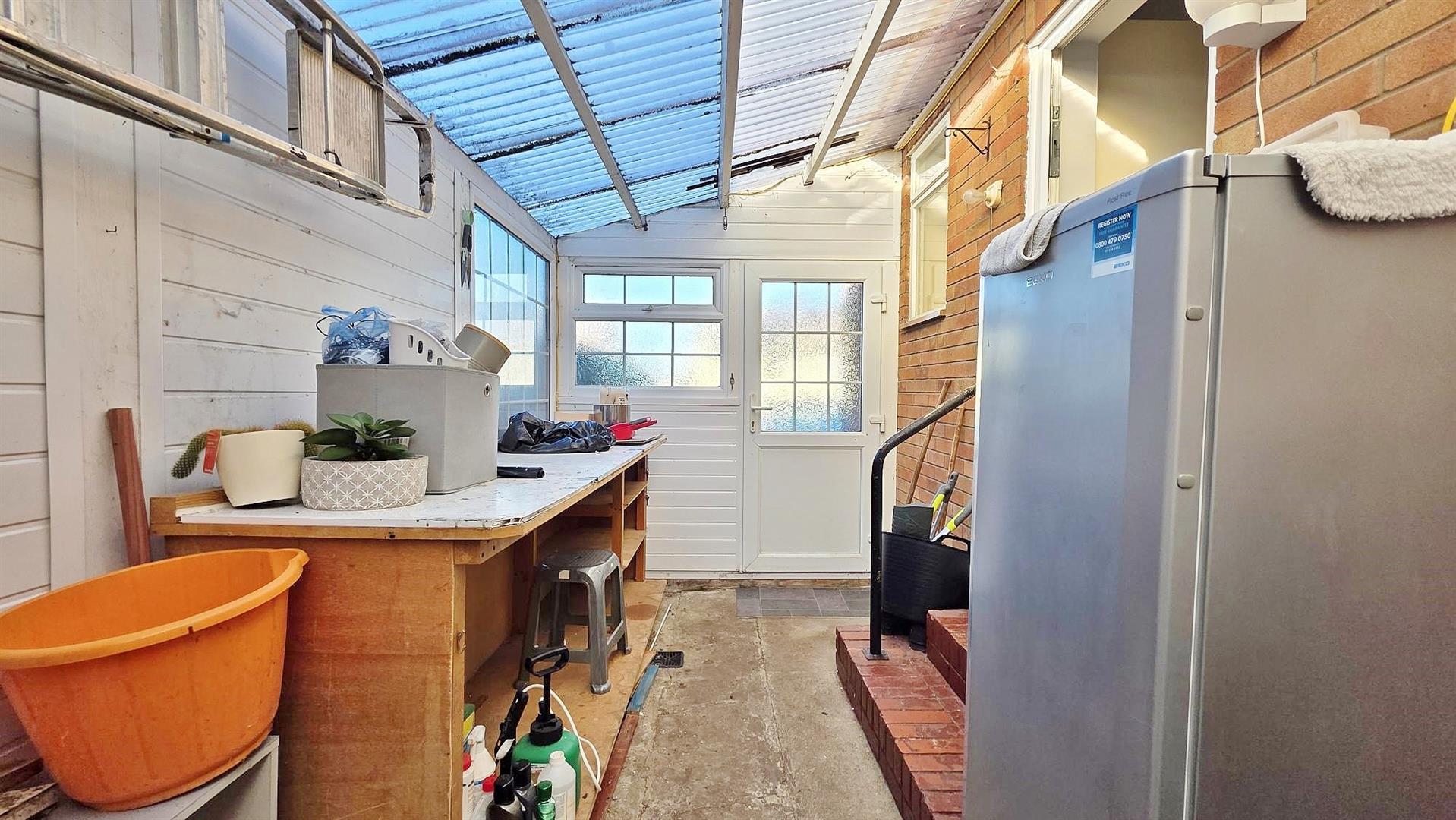 Part brick base. Glass roof. Wood laminate flooring. Radiator. Sealed unit double glazed windows to rear and side aspects. Sealed unit double glazed door giving access to rear.